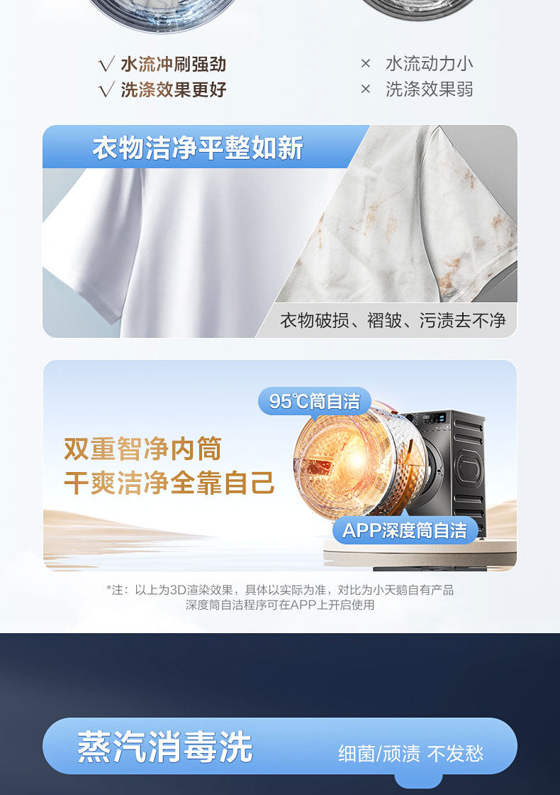 小乌梅3.0洗衣机小天鹅滚筒洗烘一体机10kg家用纯平全嵌旗舰正品