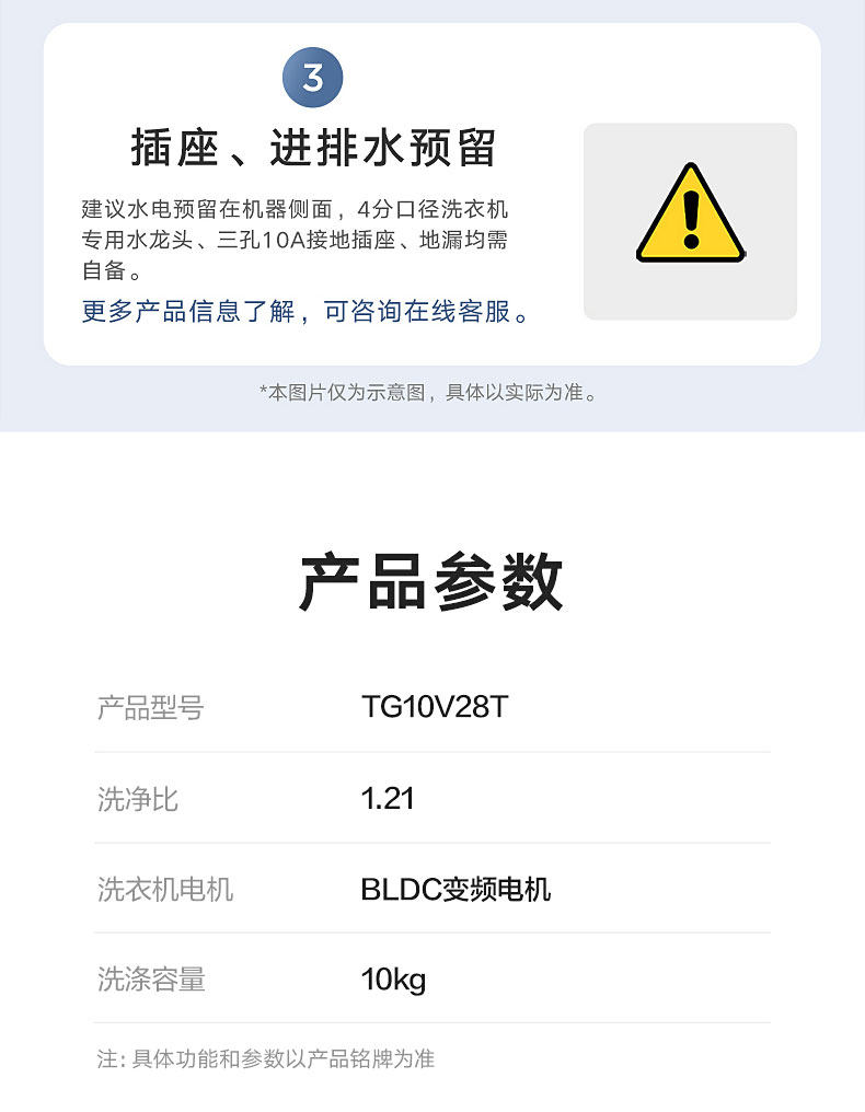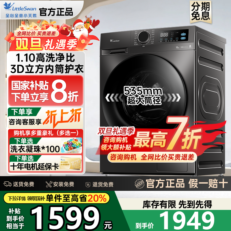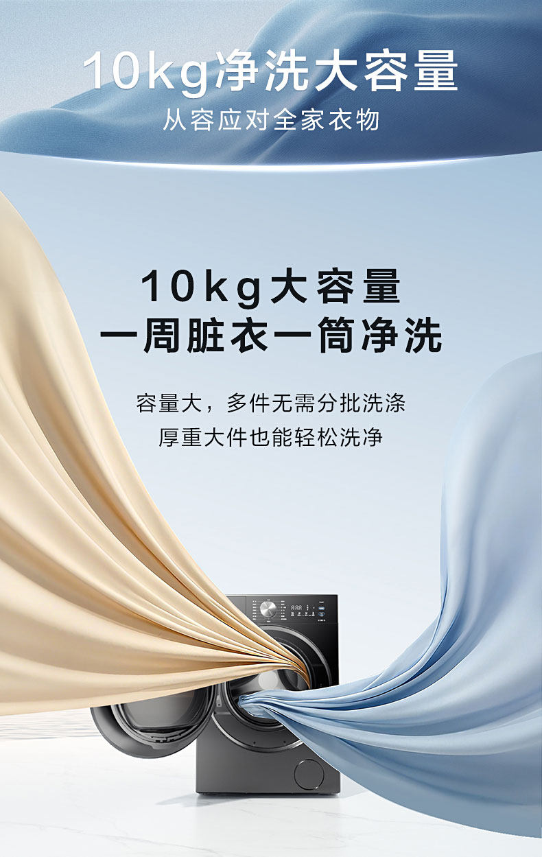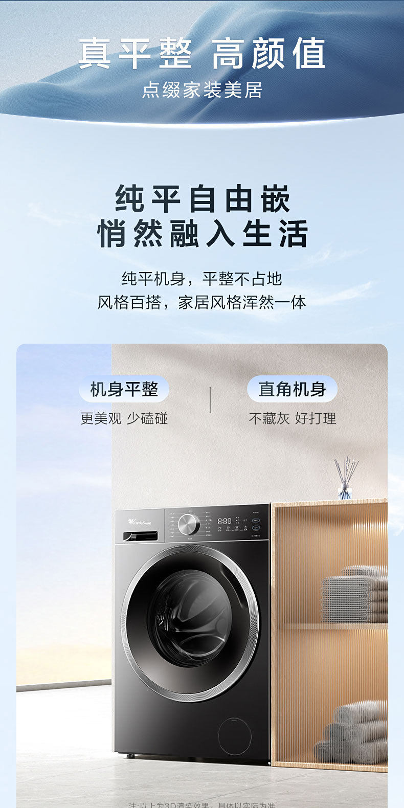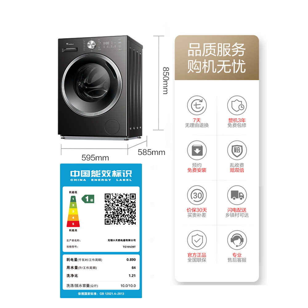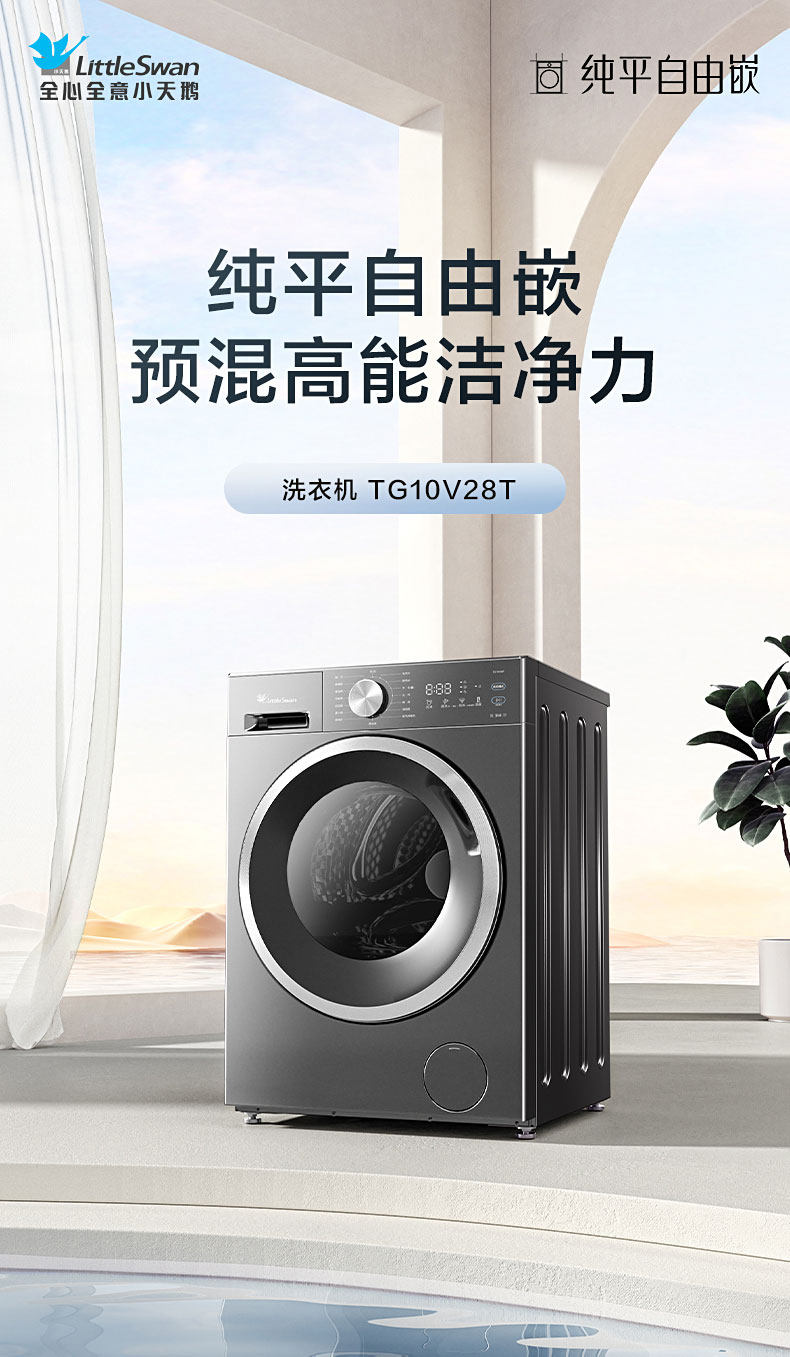 新品小天鹅洗衣机滚筒10公斤全自动家用洗烘脱一体纯平嵌超薄V28T