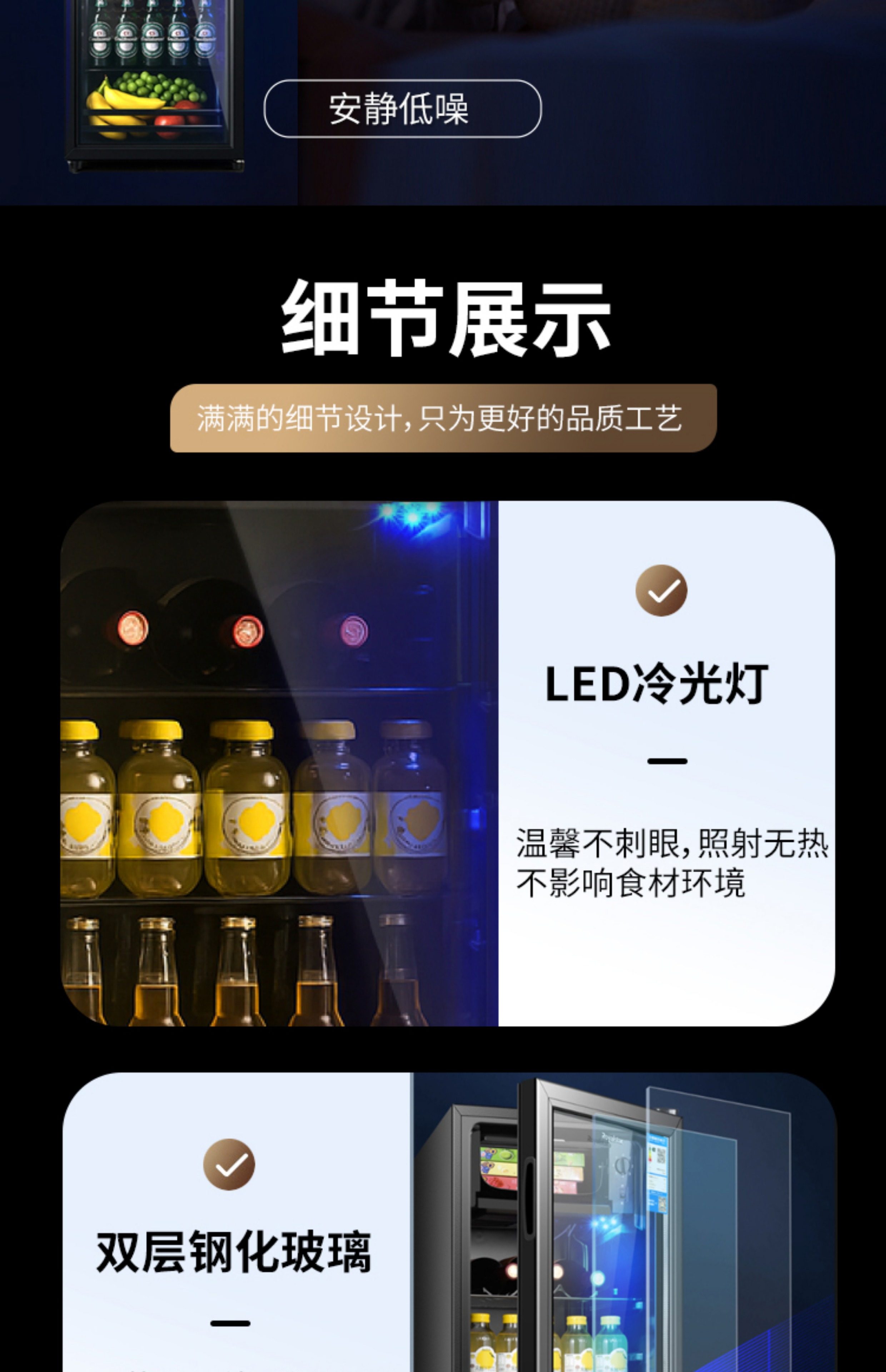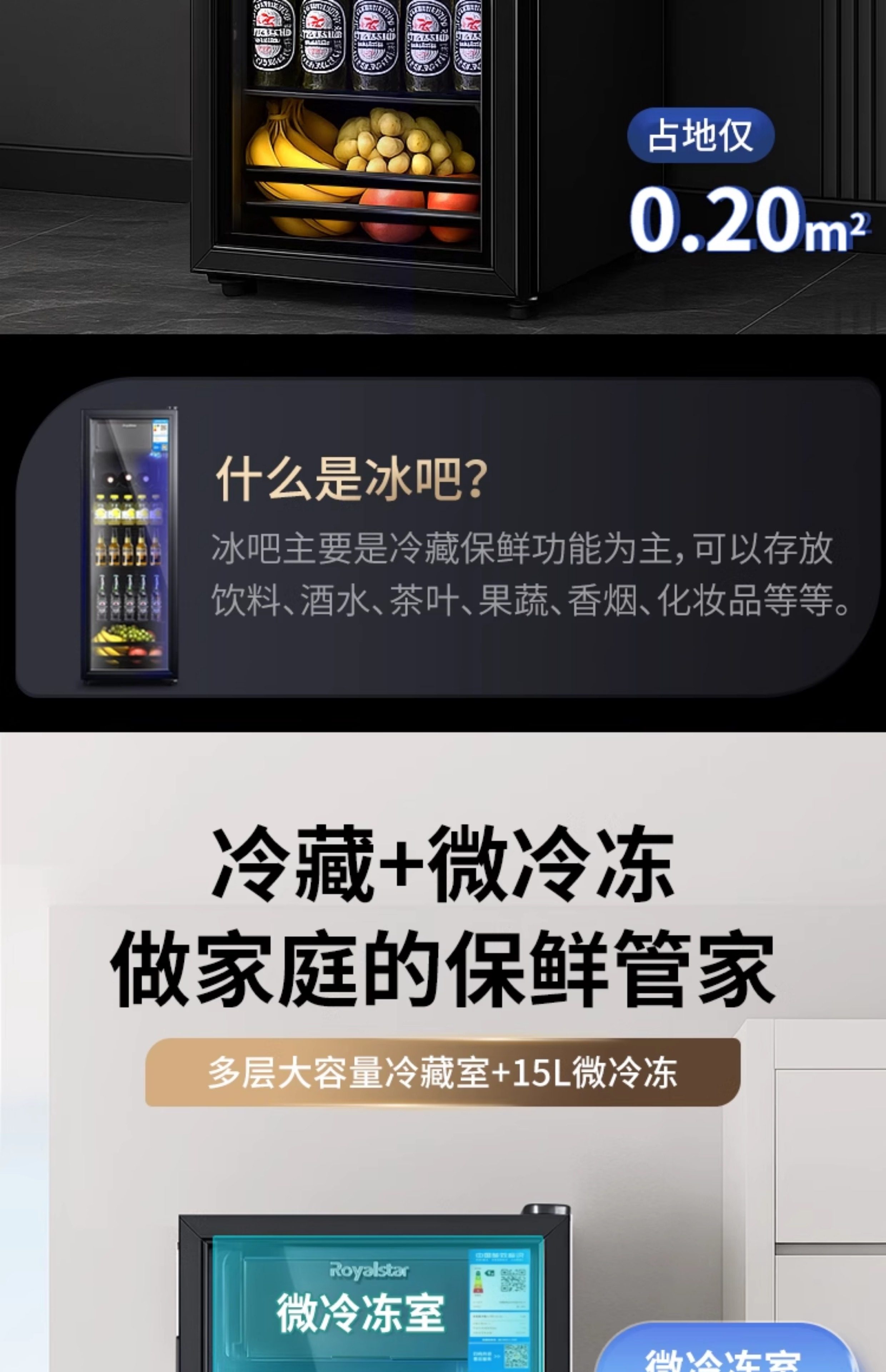 荣事达冰吧家用冷藏柜小型办公室冰箱客厅酒店茶叶饮料红酒保鲜柜