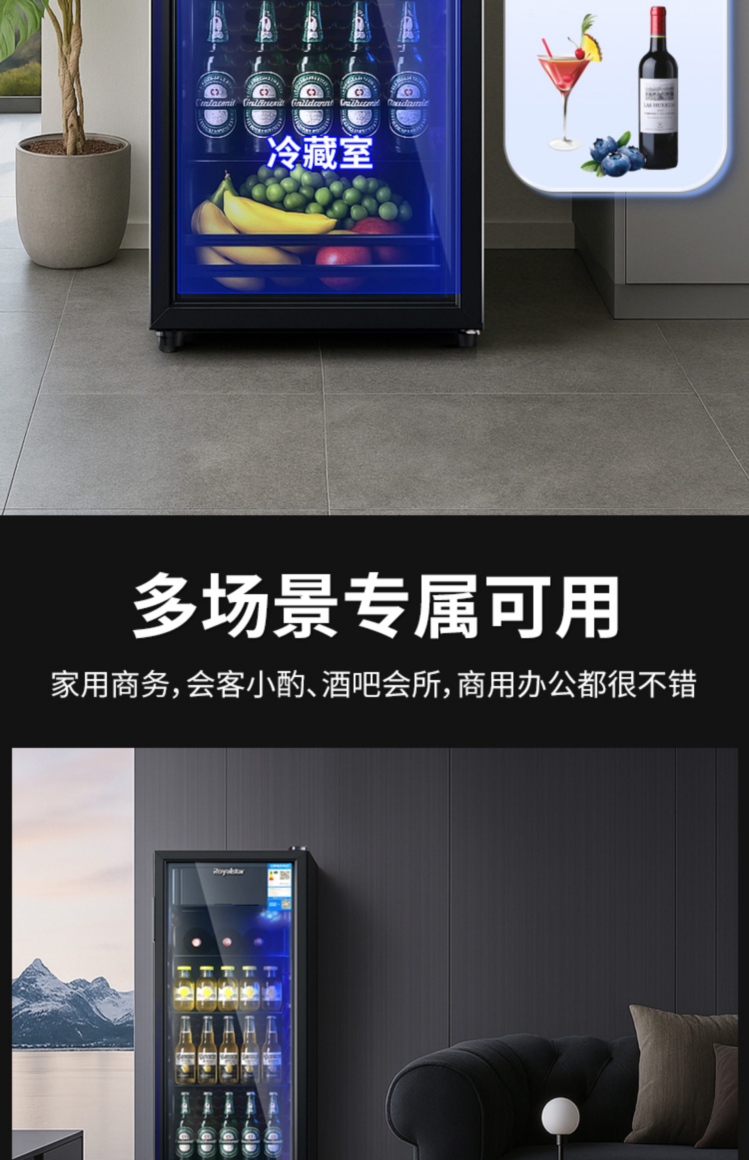 荣事达冰吧家用冷藏柜小型冰箱办公室客厅果蔬茶叶饮料红酒保鲜柜