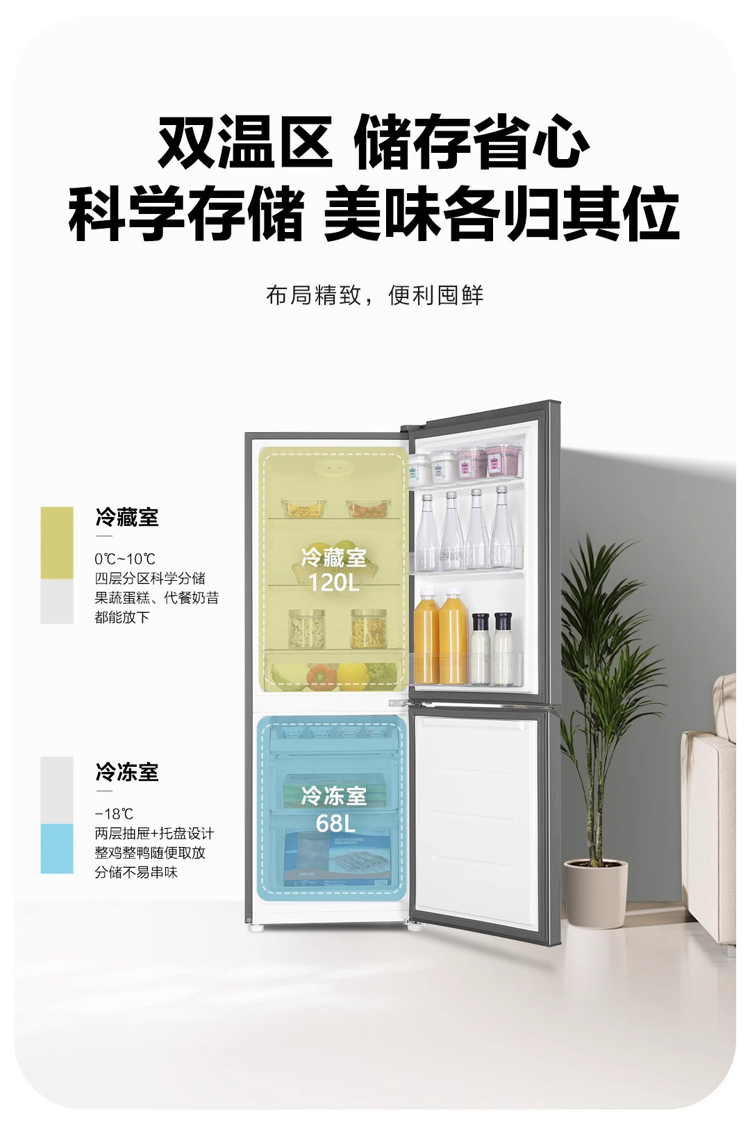 【一级能效】志高复古小型家用立式冷柜办公室冷藏冷冻迷你小冰箱