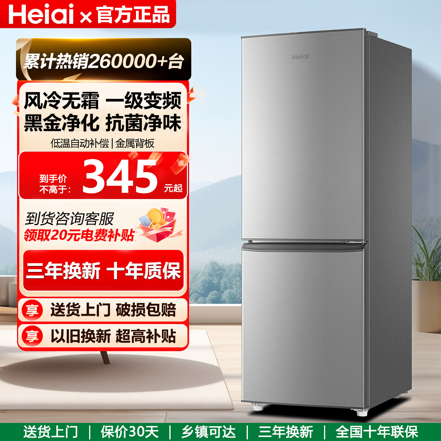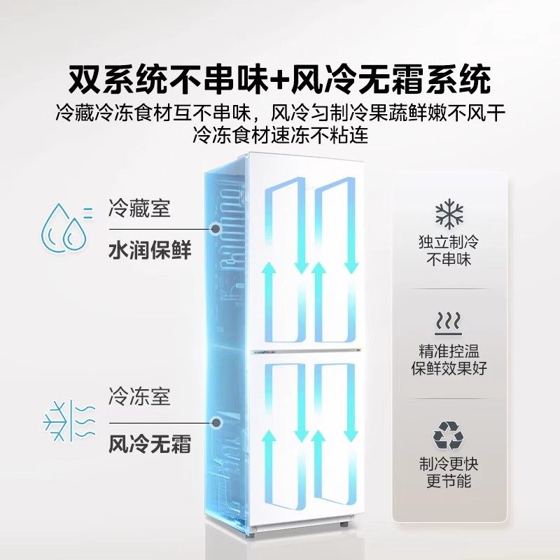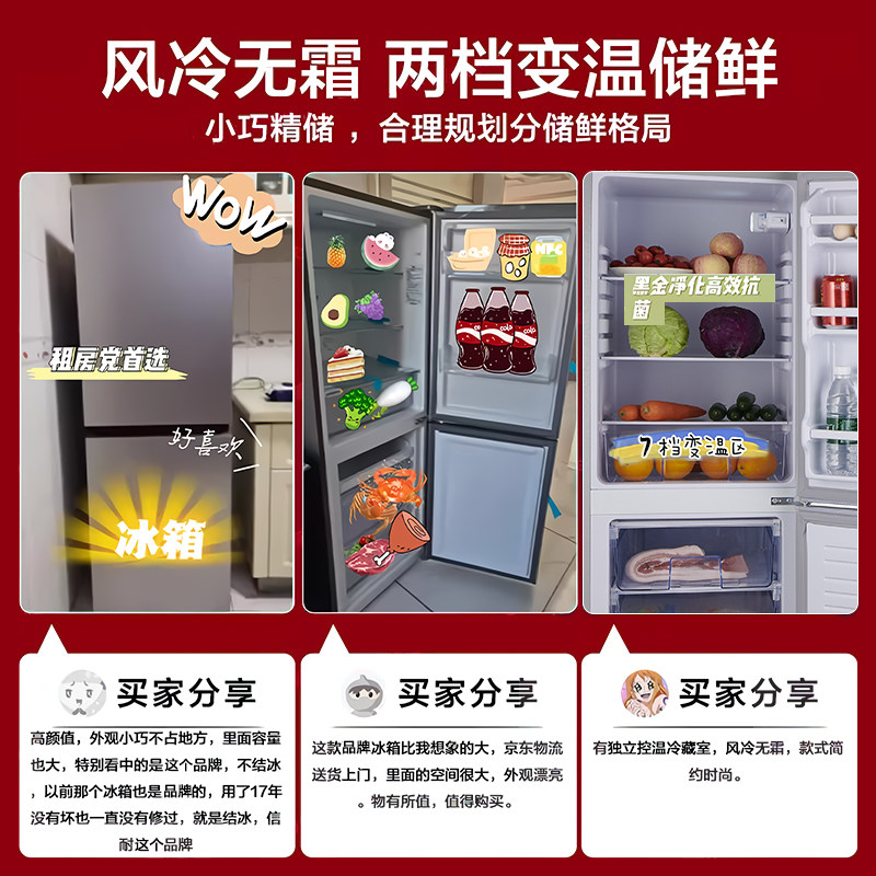 Heiai冰箱一级能效风冷家用小型宿舍出租屋二人用双开门官方正品