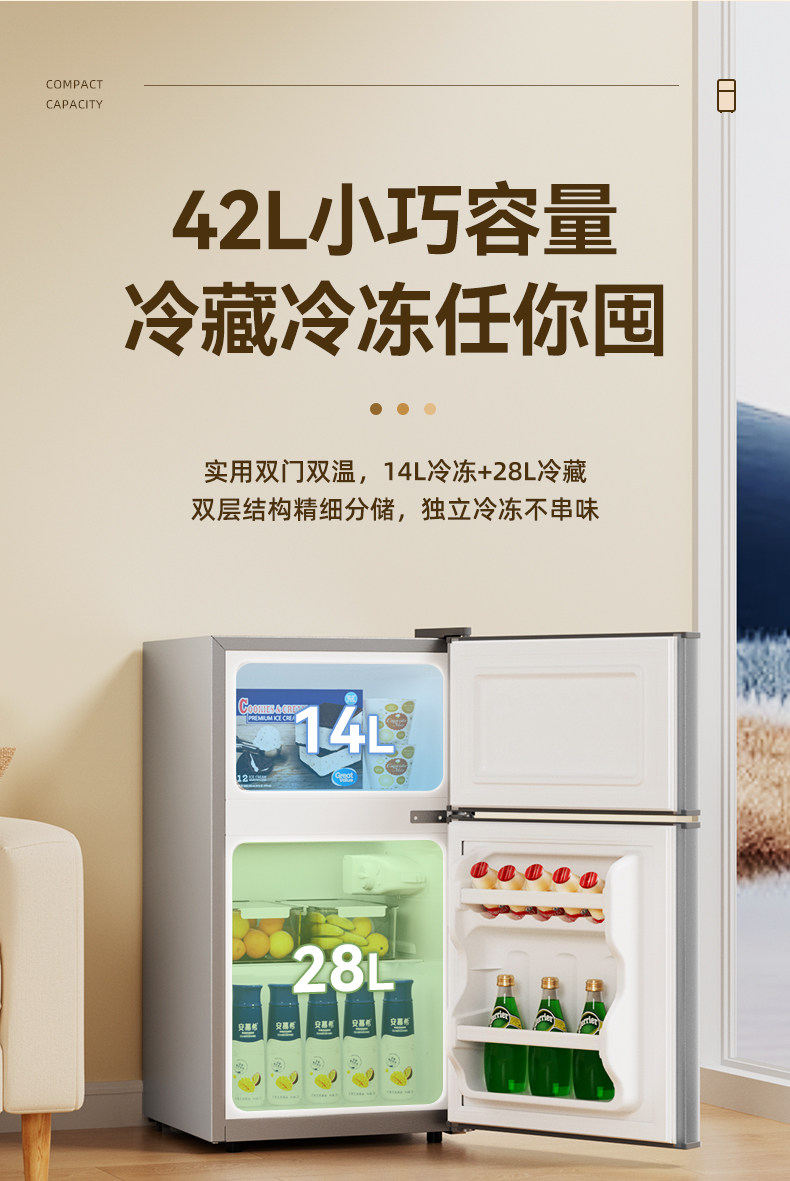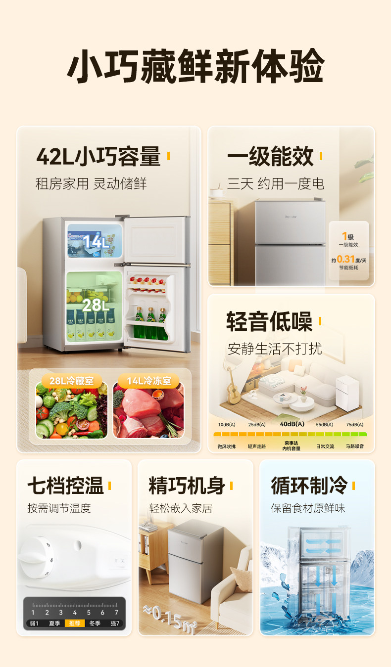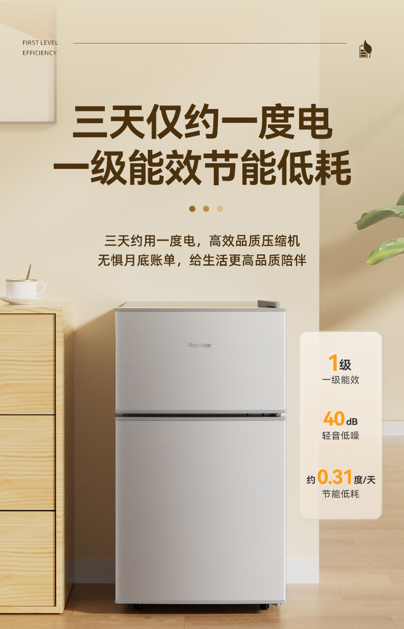 一级节能荣事达小冰箱家用小型出租房宿舍单人办公室迷你双门冰箱