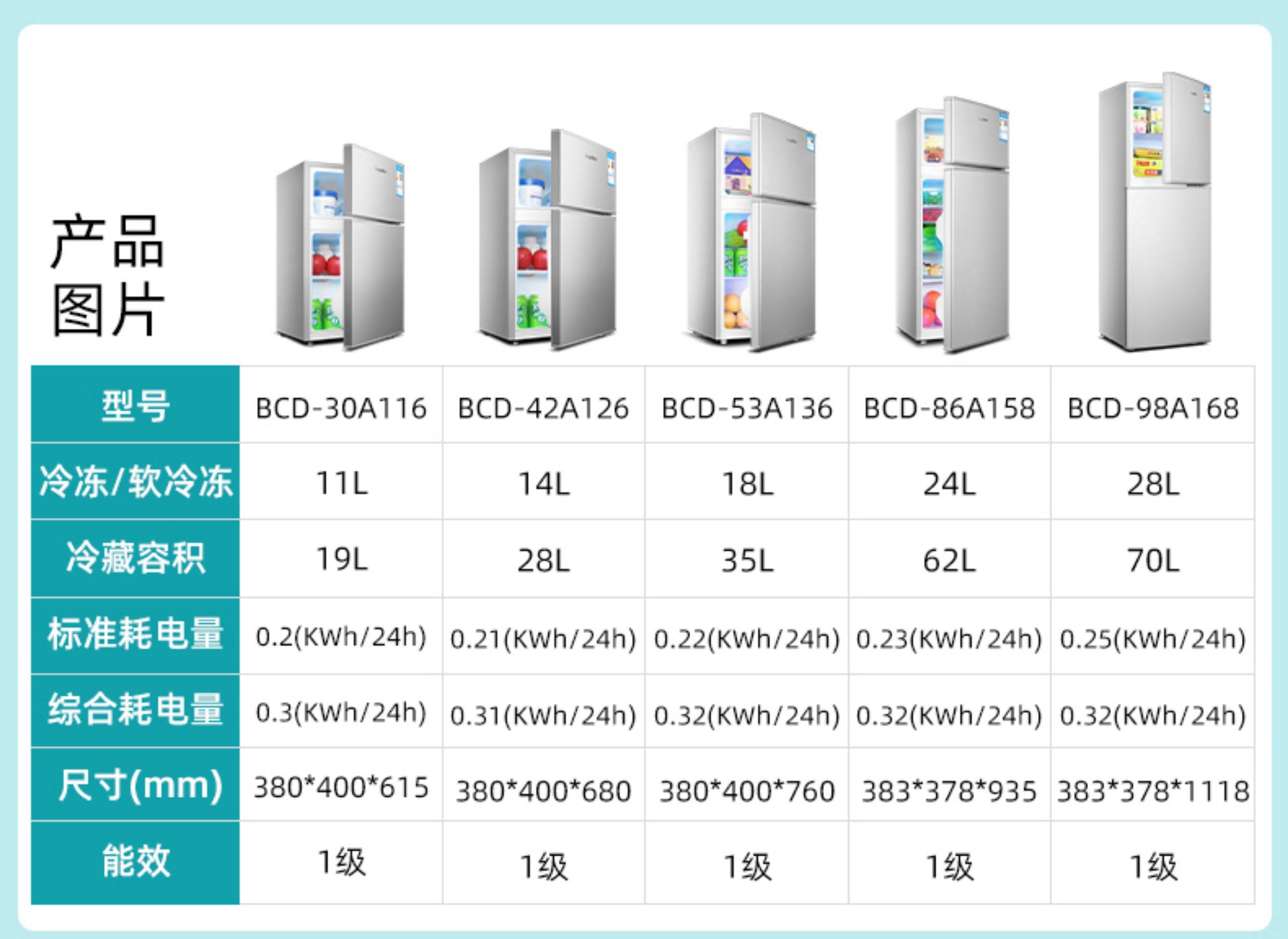 一级节能荣事达小冰箱家用小型出租房宿舍单人办公室迷你双门冰箱