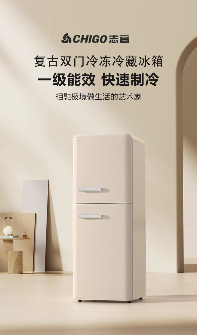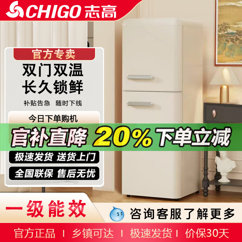 【一级能效】志高复古小型家用立式冷柜办公室冷藏冷冻迷你小冰箱