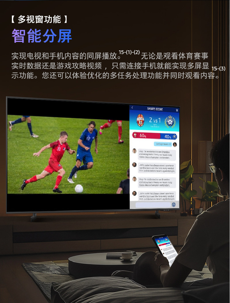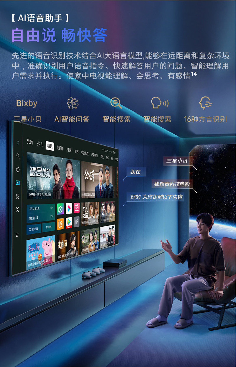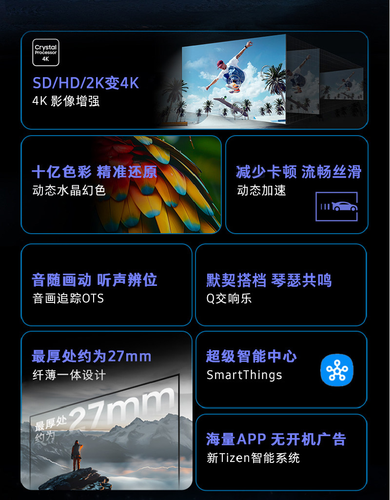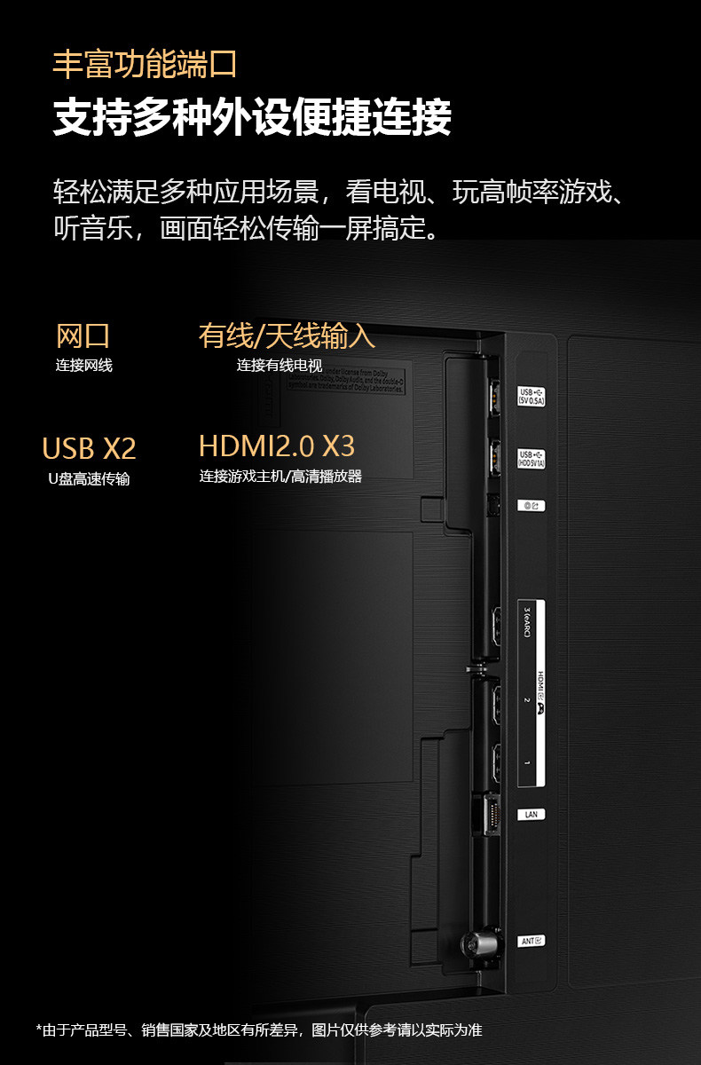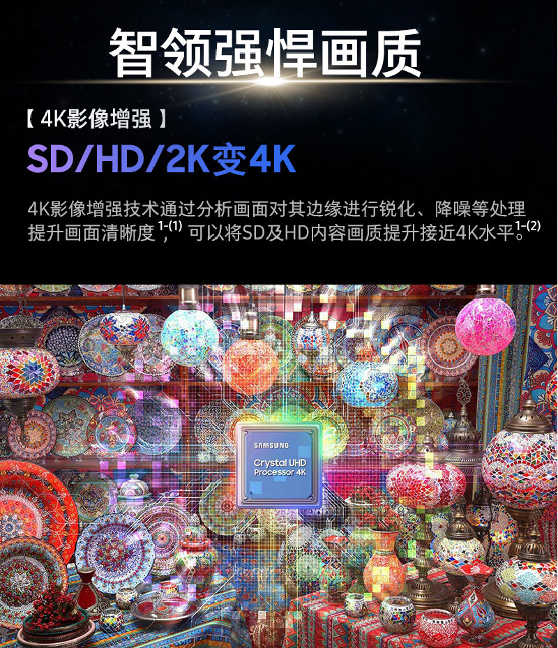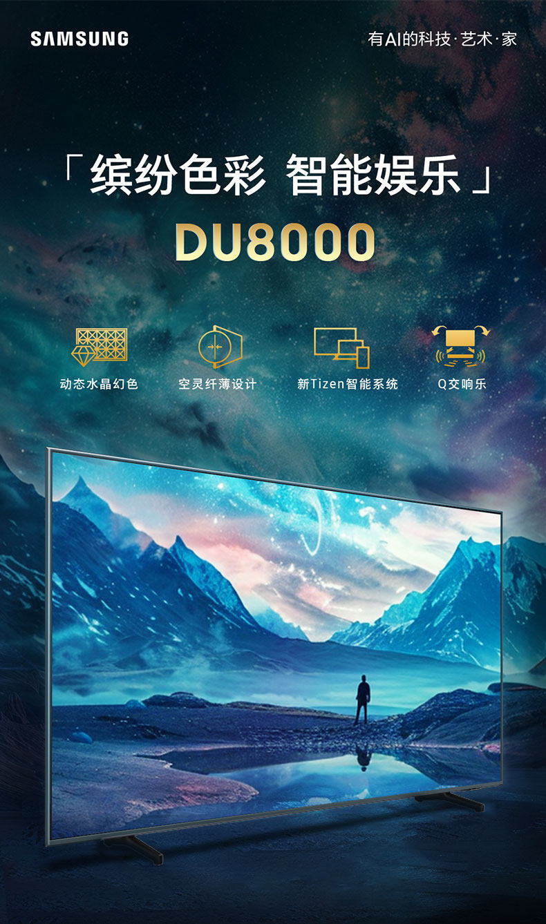 三星75DU8000 75英寸高清超薄4K智能AI液晶电视机家用彩电