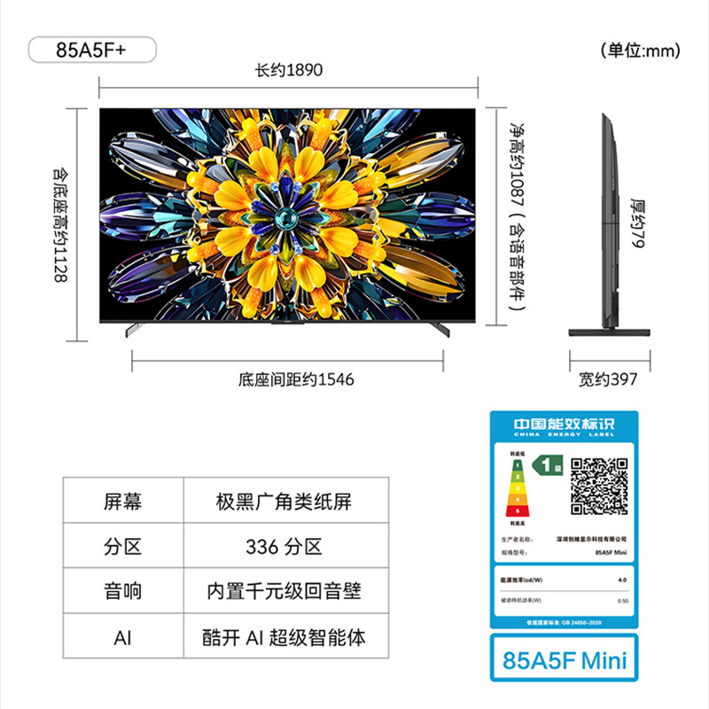 创维黑骑士A5F+ 85英寸Miniled极黑类纸屏电视机 以旧换新补贴