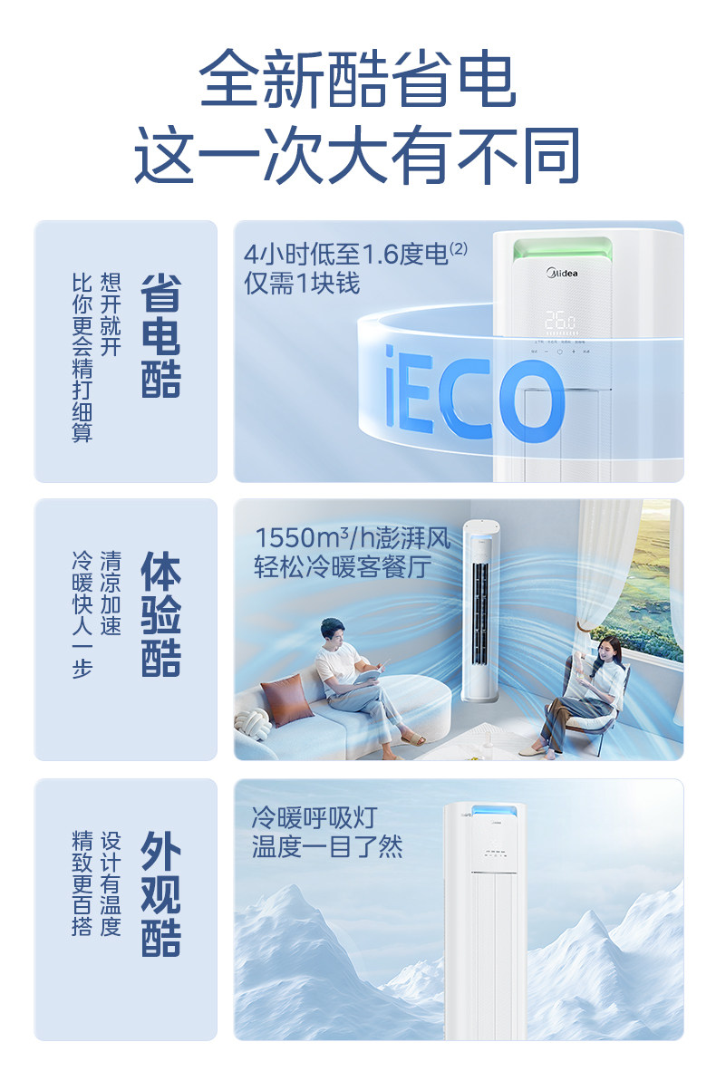 【新品】美的空调立式新一级变频大3匹2p客厅家用冷暖柜机酷省电