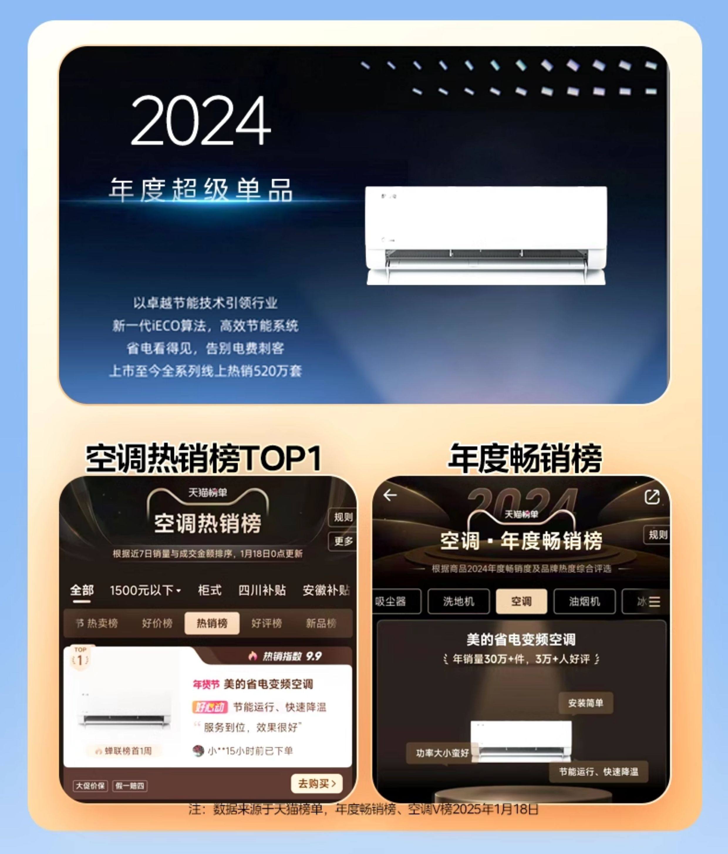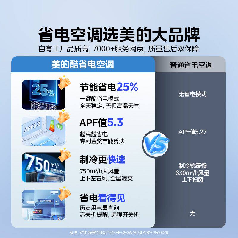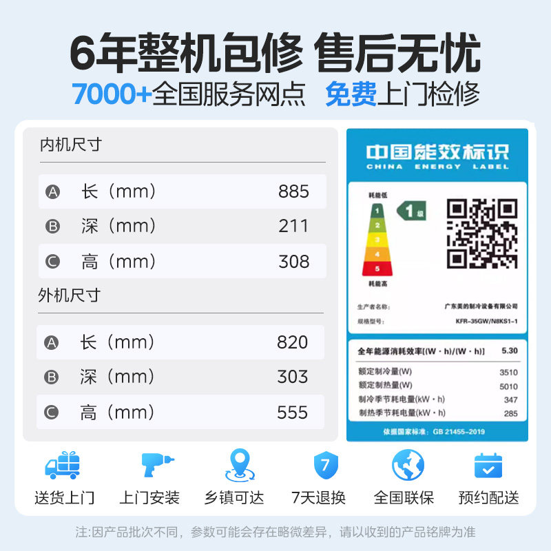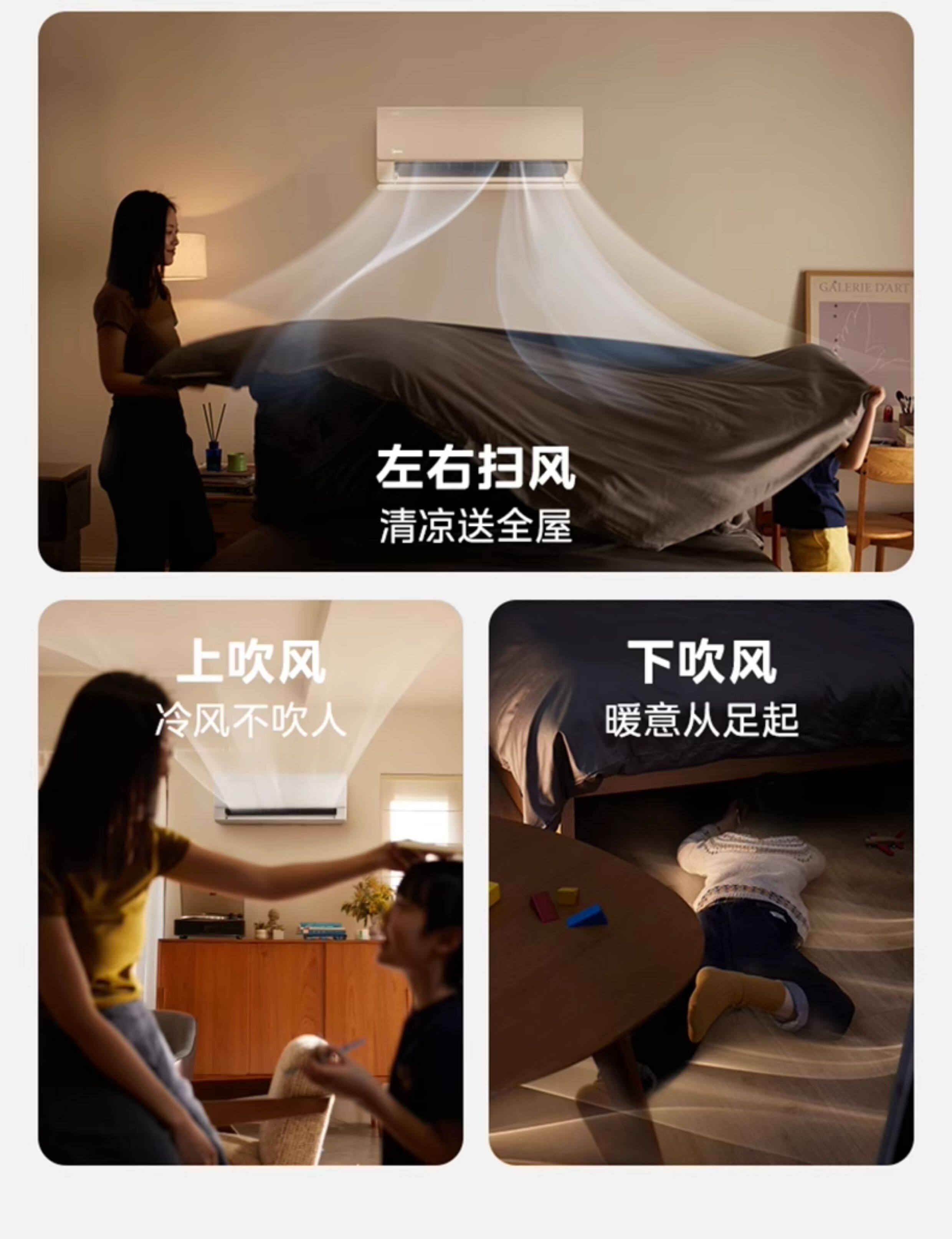 美的空调酷省电家用卧室大1.5匹2匹一级变频冷暖挂机官方旗舰店