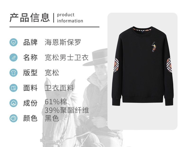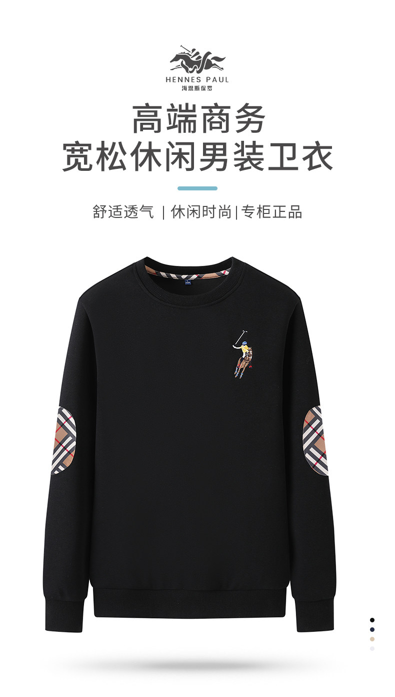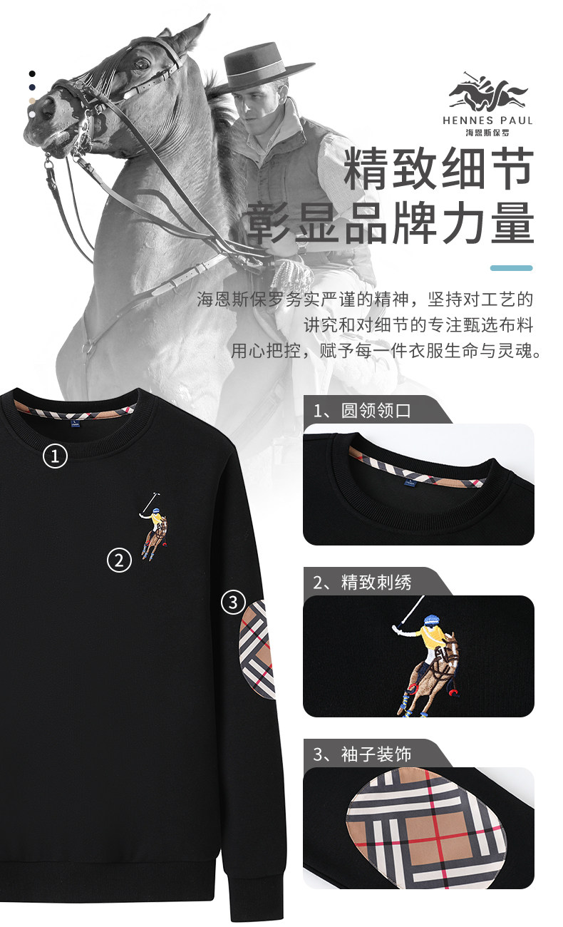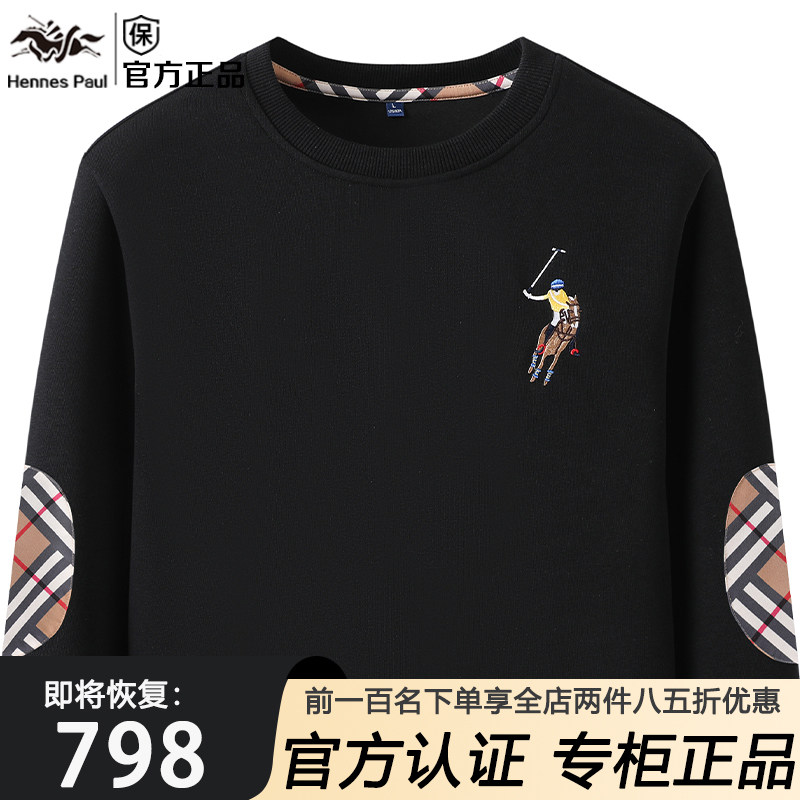 专柜保罗长袖T恤男秋冬新款圆领纯棉加绒卫衣宽松大码男装上衣服