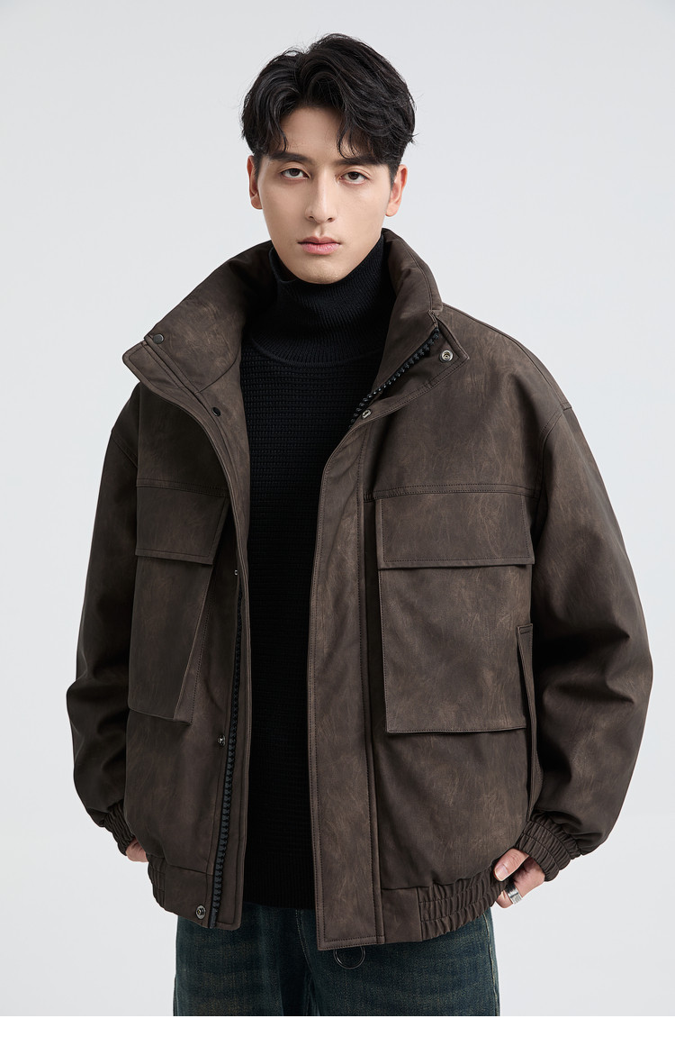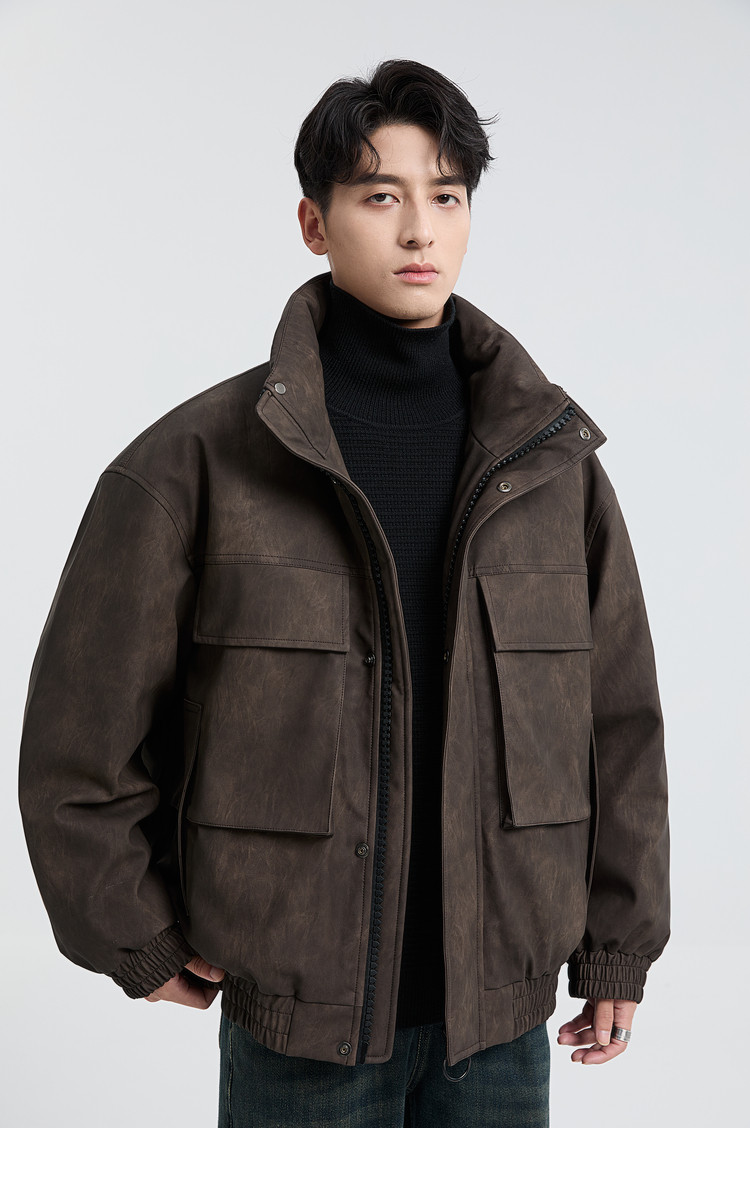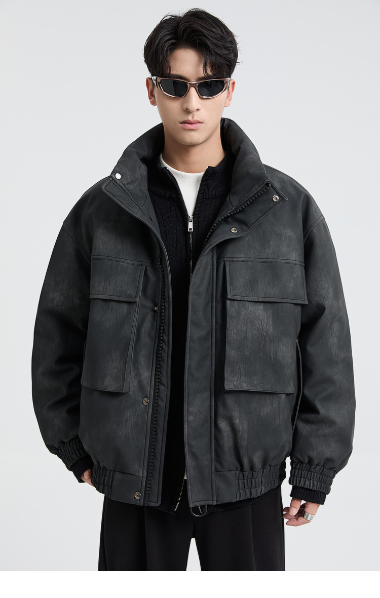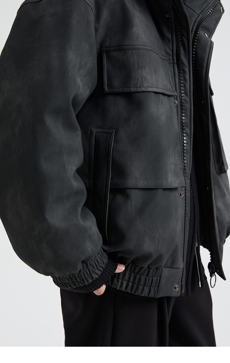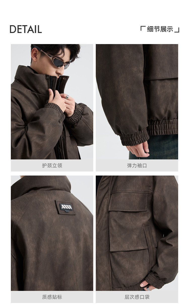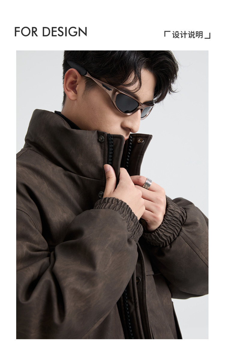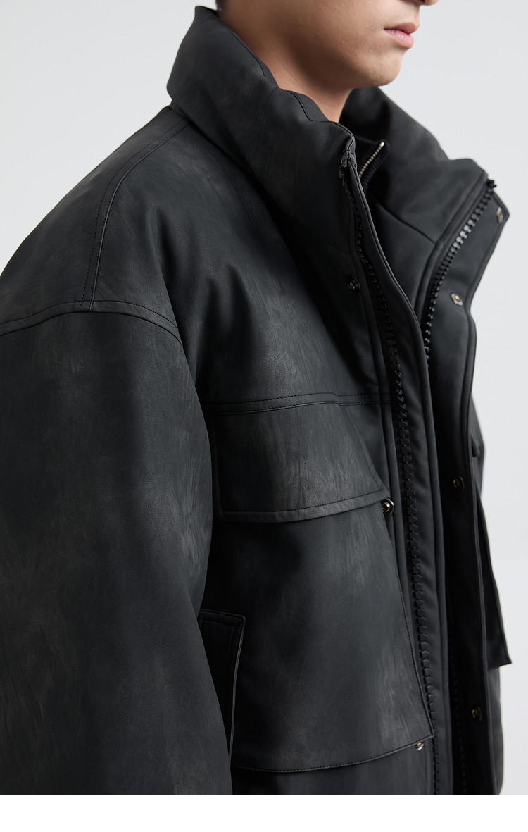 黑择明冬季新品高级感pu皮立领羽绒服男工装潮流帅气机车鸭绒外套