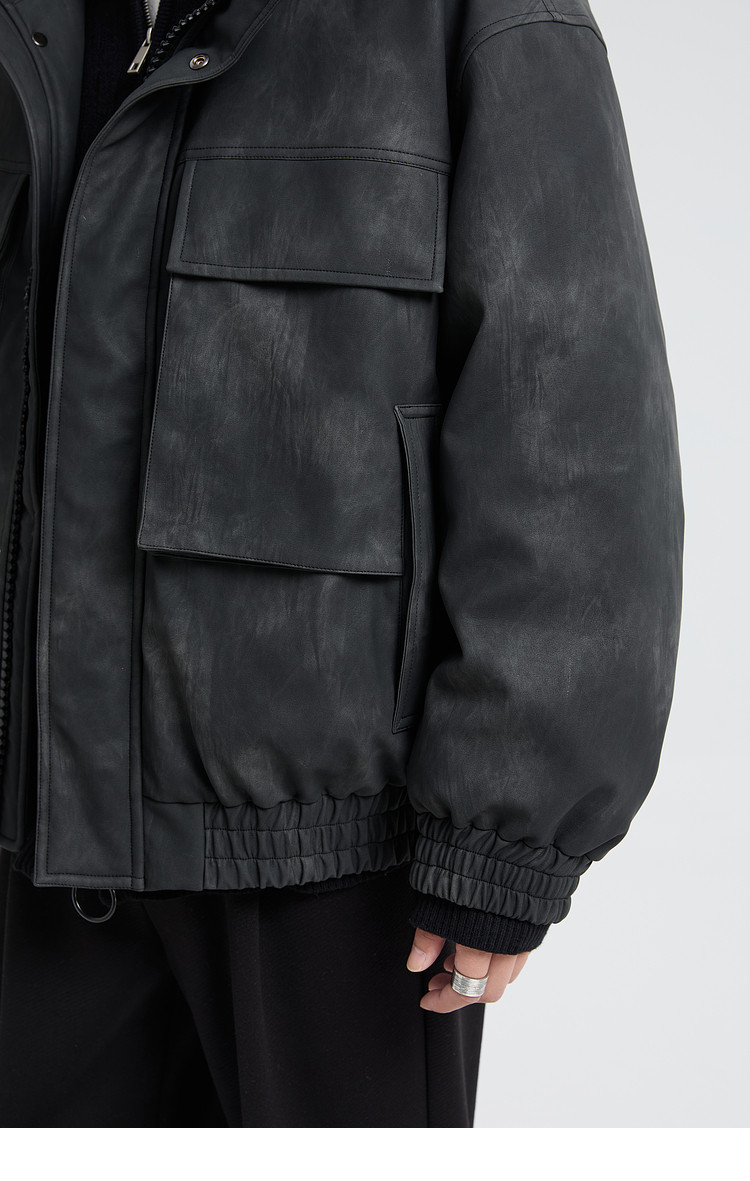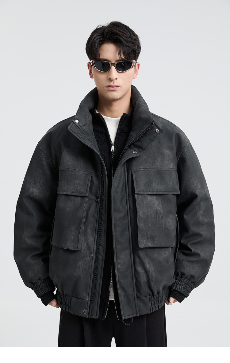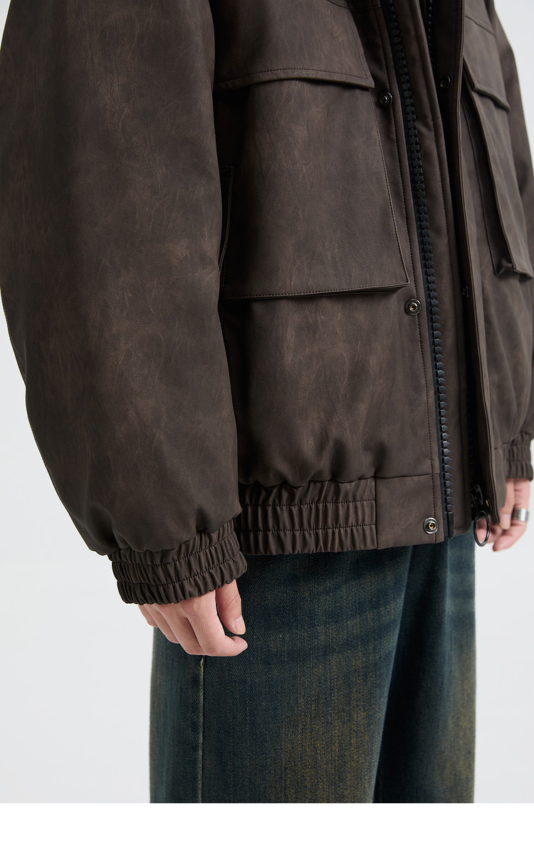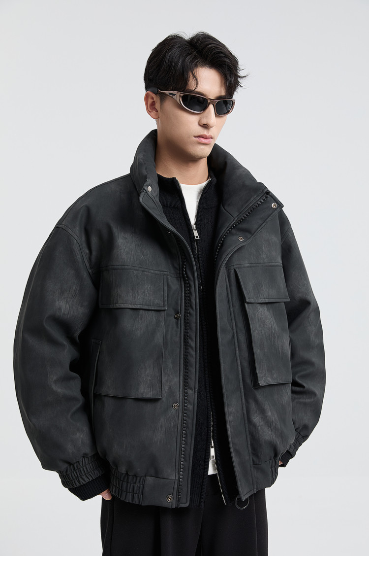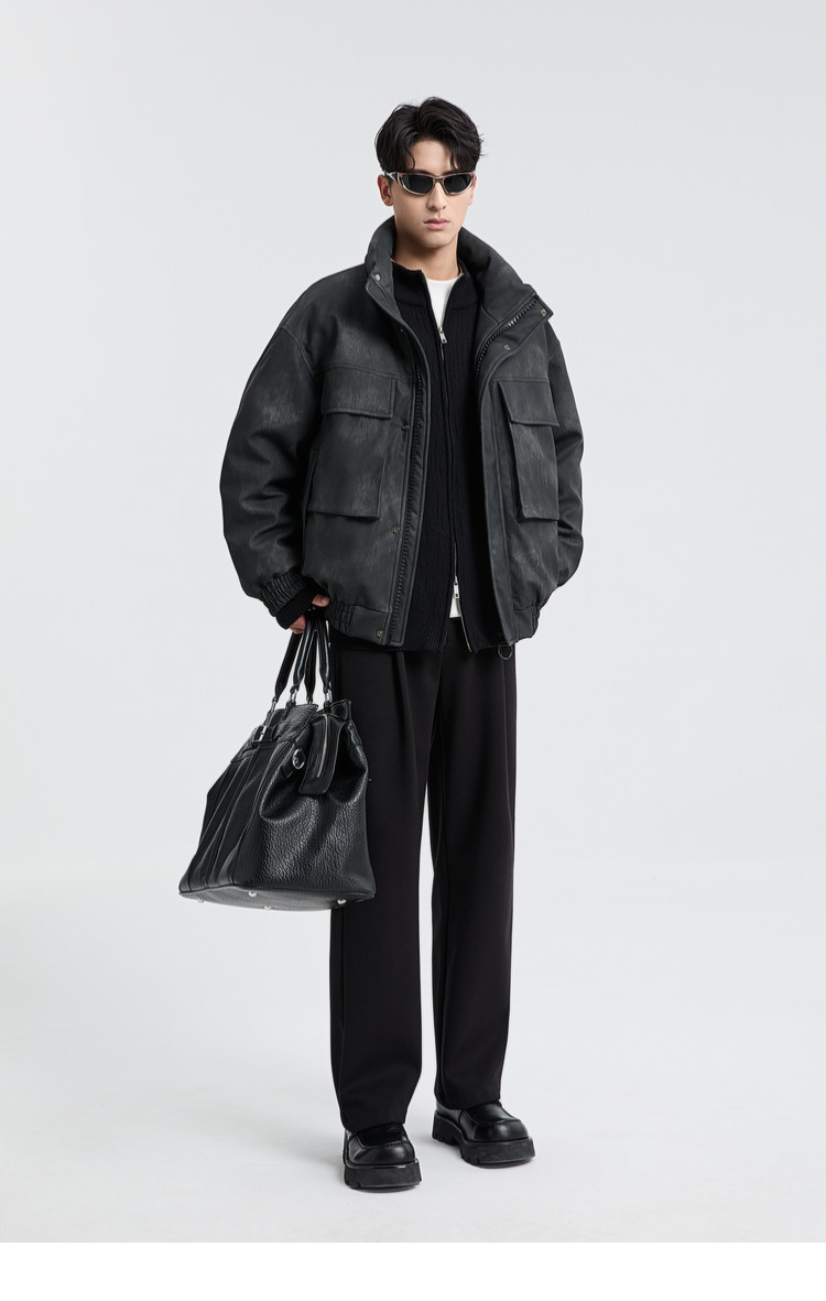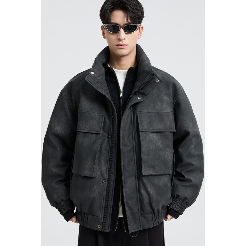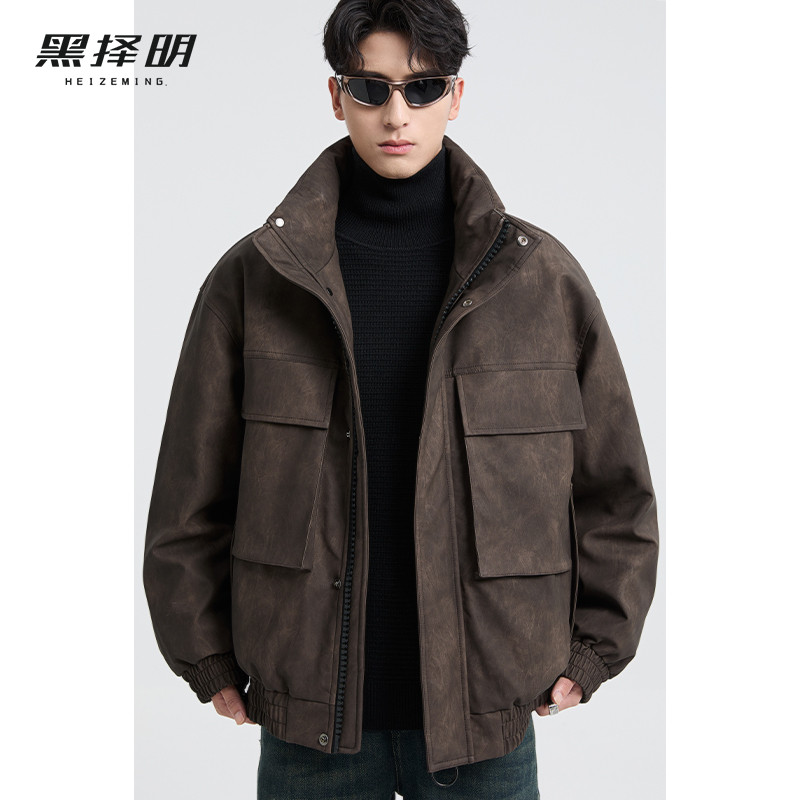 黑择明冬季新品高级感pu皮立领羽绒服男工装潮流帅气机车鸭绒外套