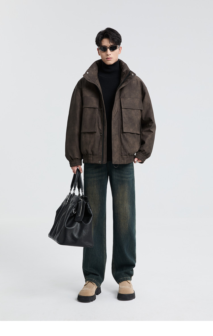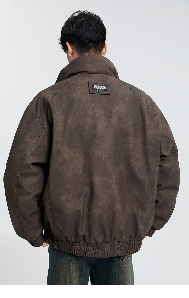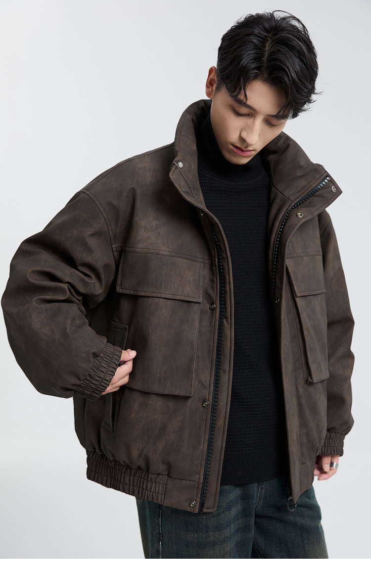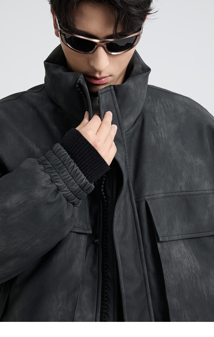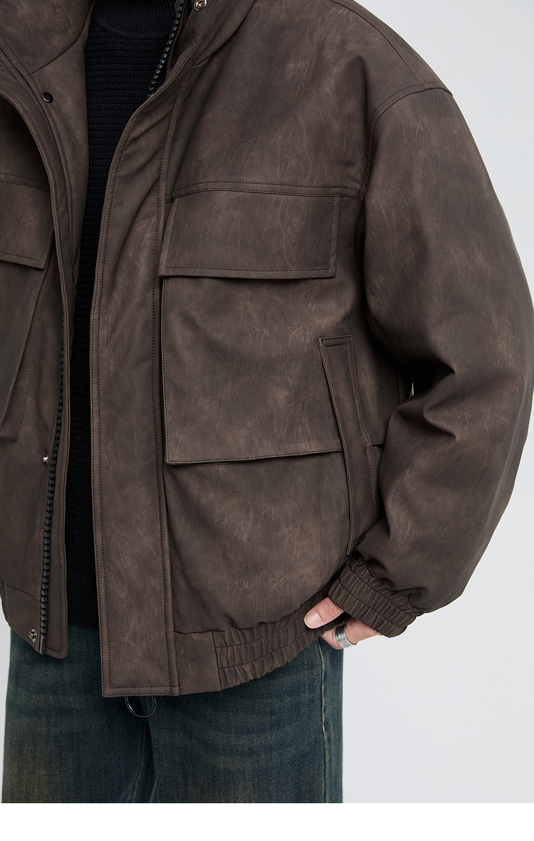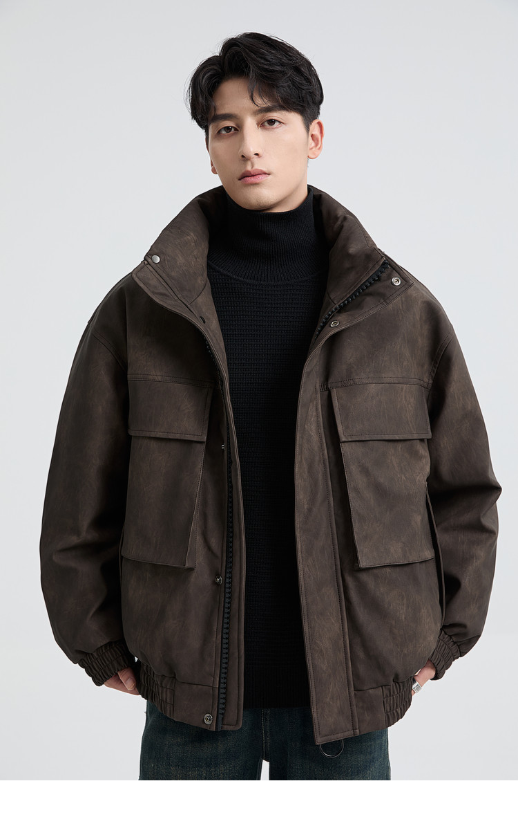 黑择明冬季新品高级感pu皮立领羽绒服男工装潮流帅气机车鸭绒外套