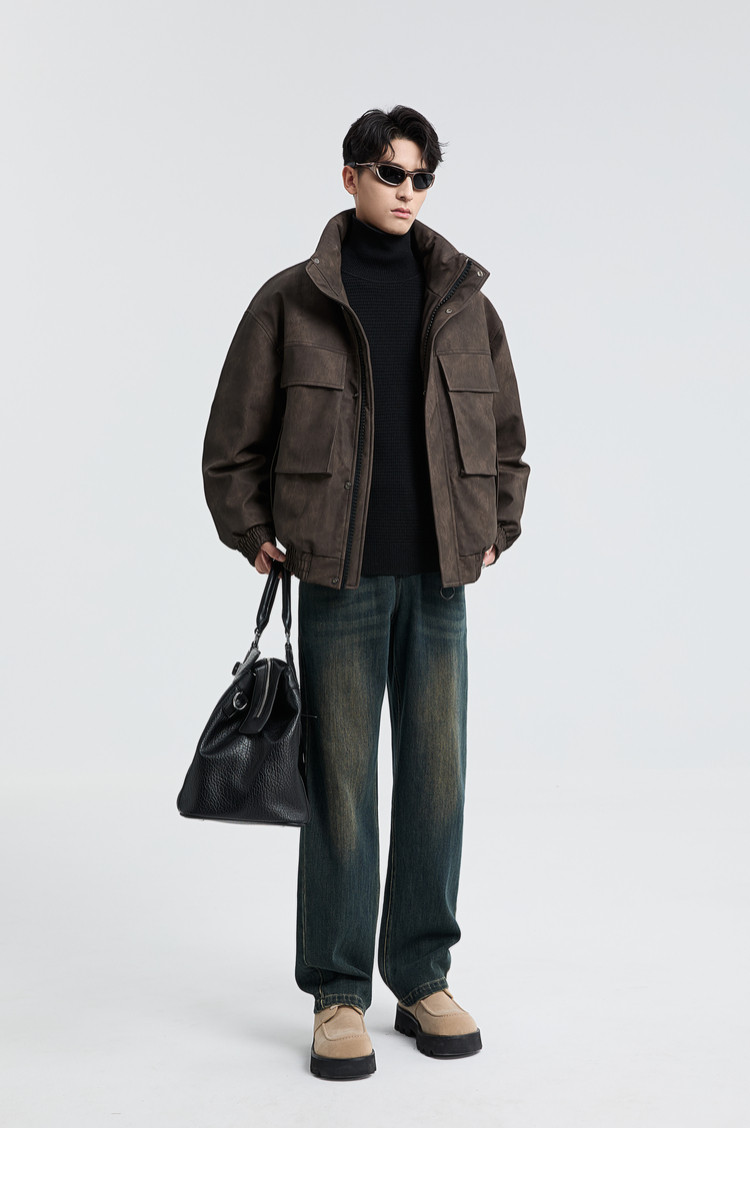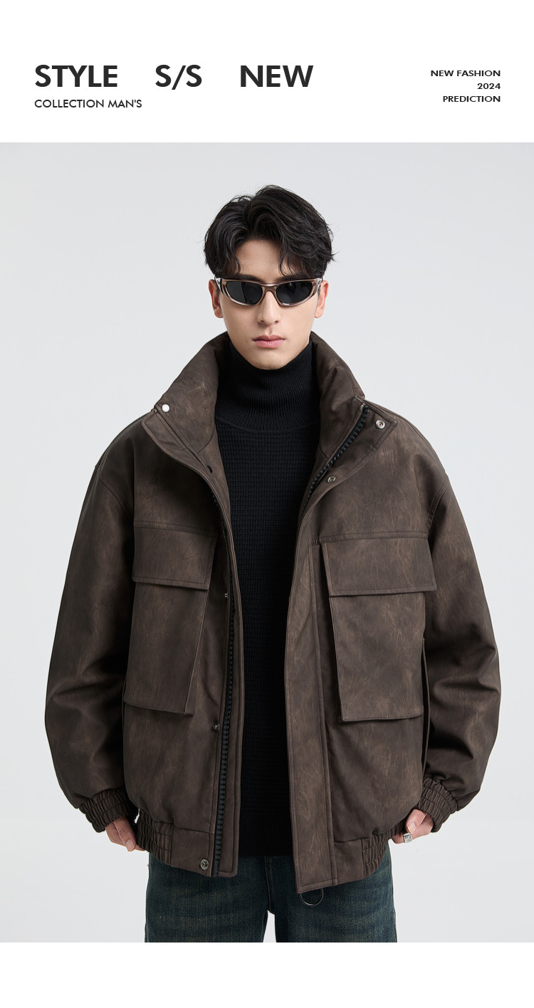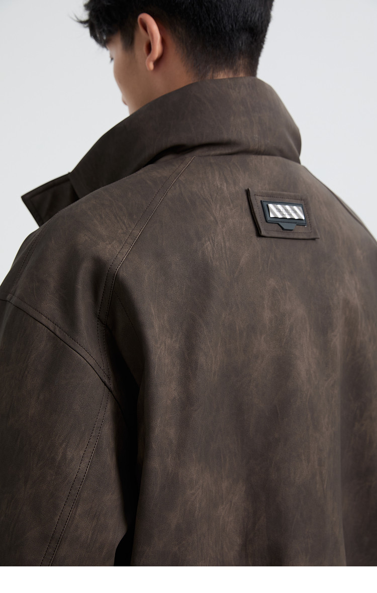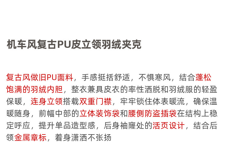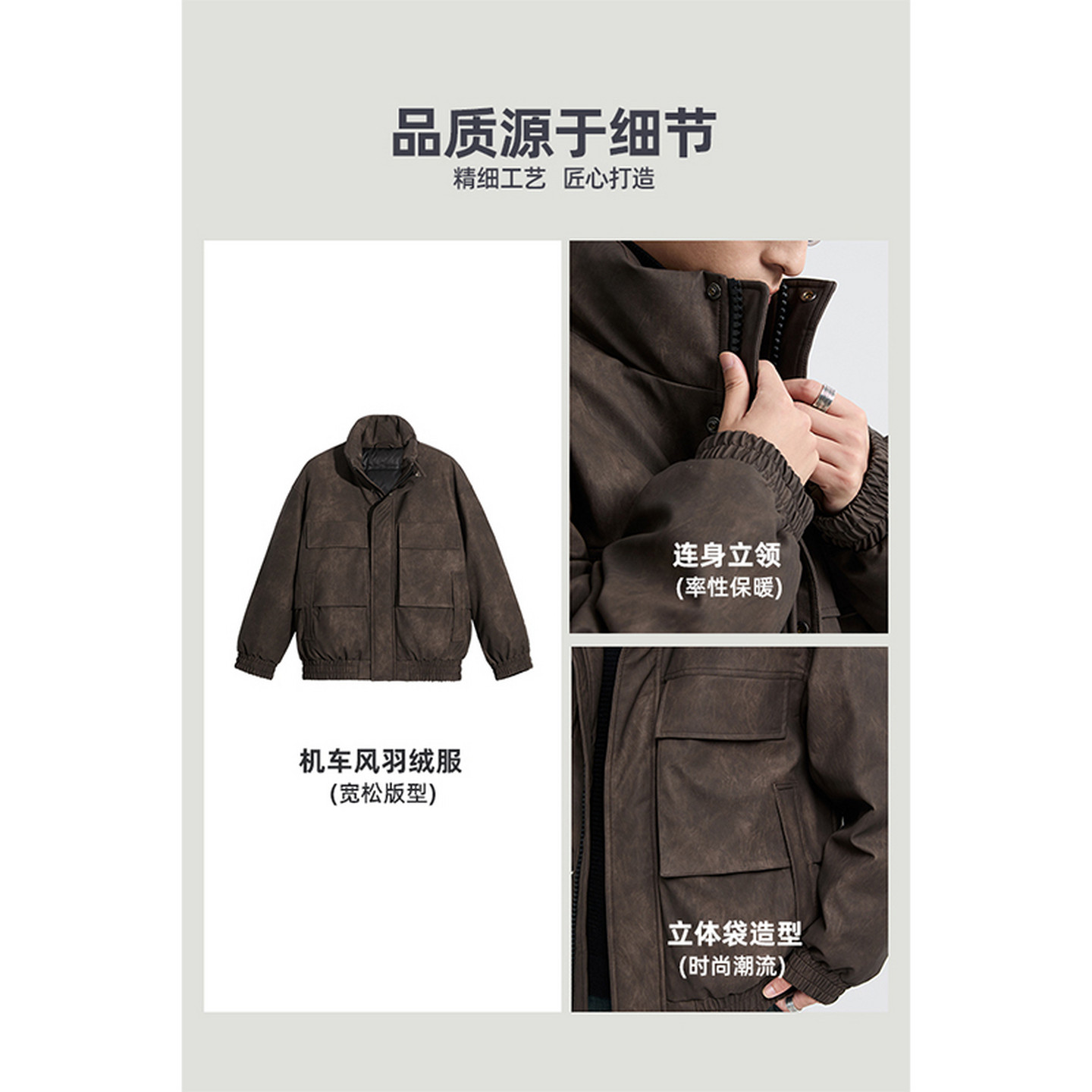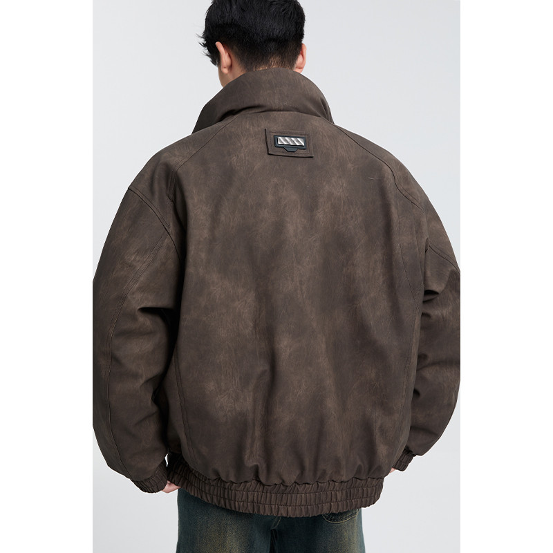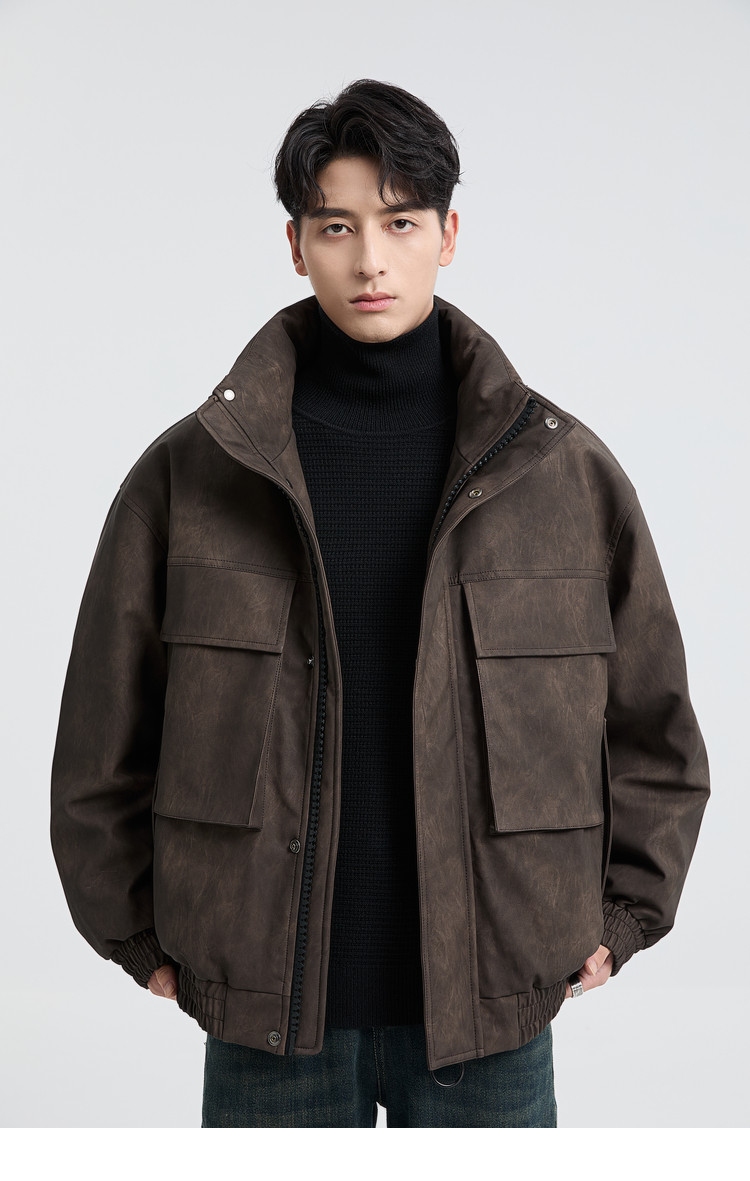 黑择明冬季新品高级感pu皮立领羽绒服男工装潮流帅气机车鸭绒外套