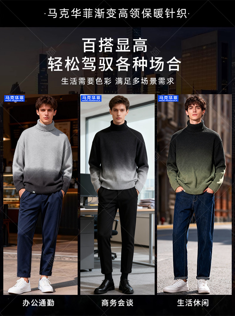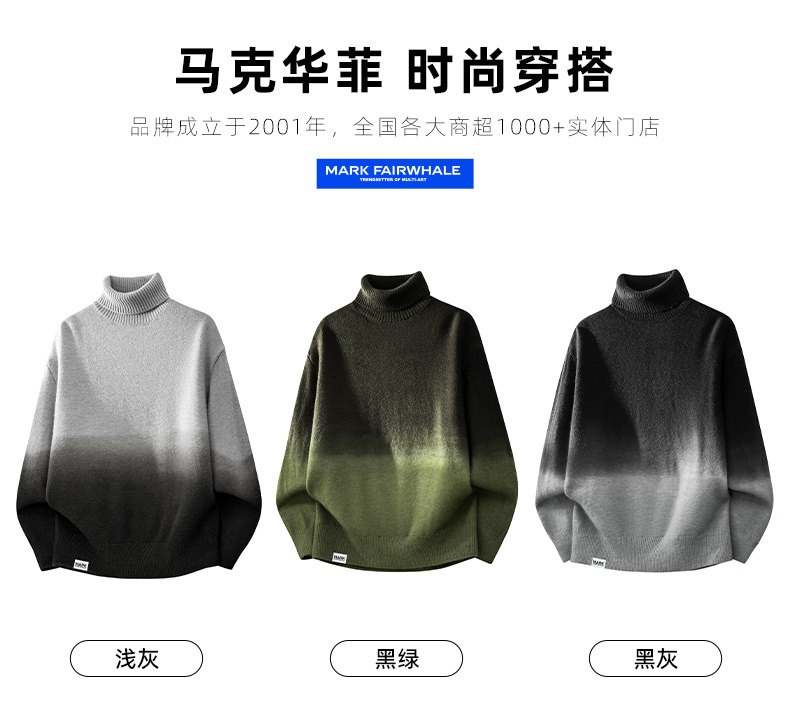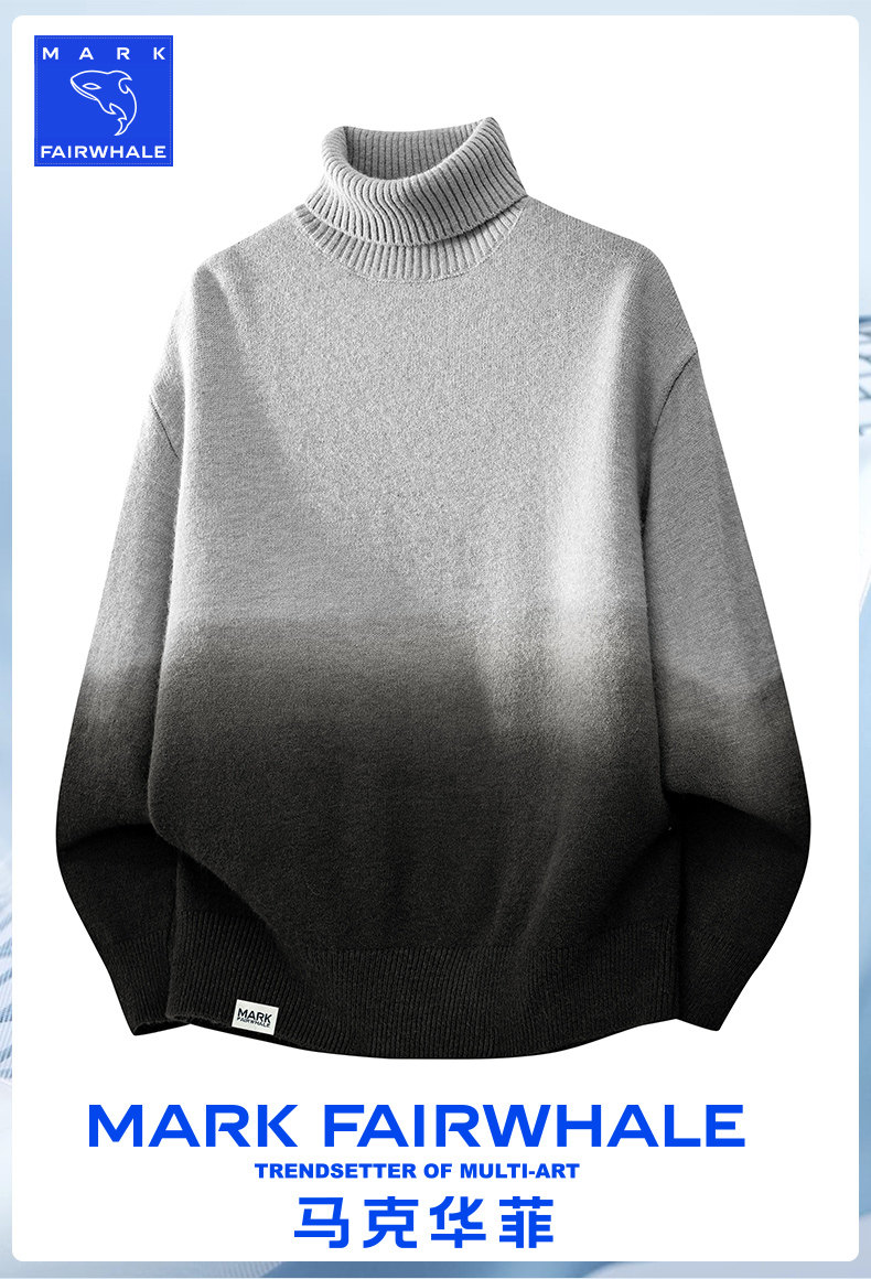 马克华菲渐变色高领毛衣男2025新款秋冬季保暖休闲潮流针织打底衫