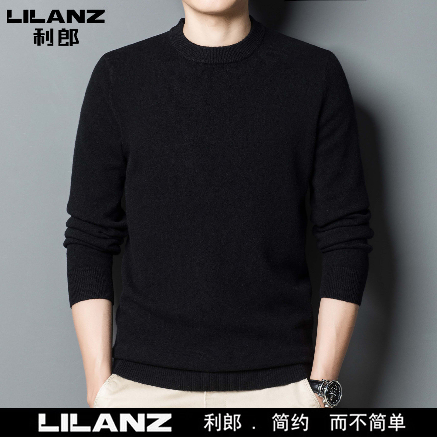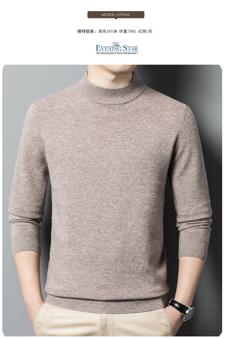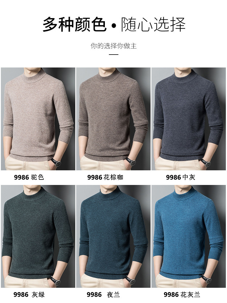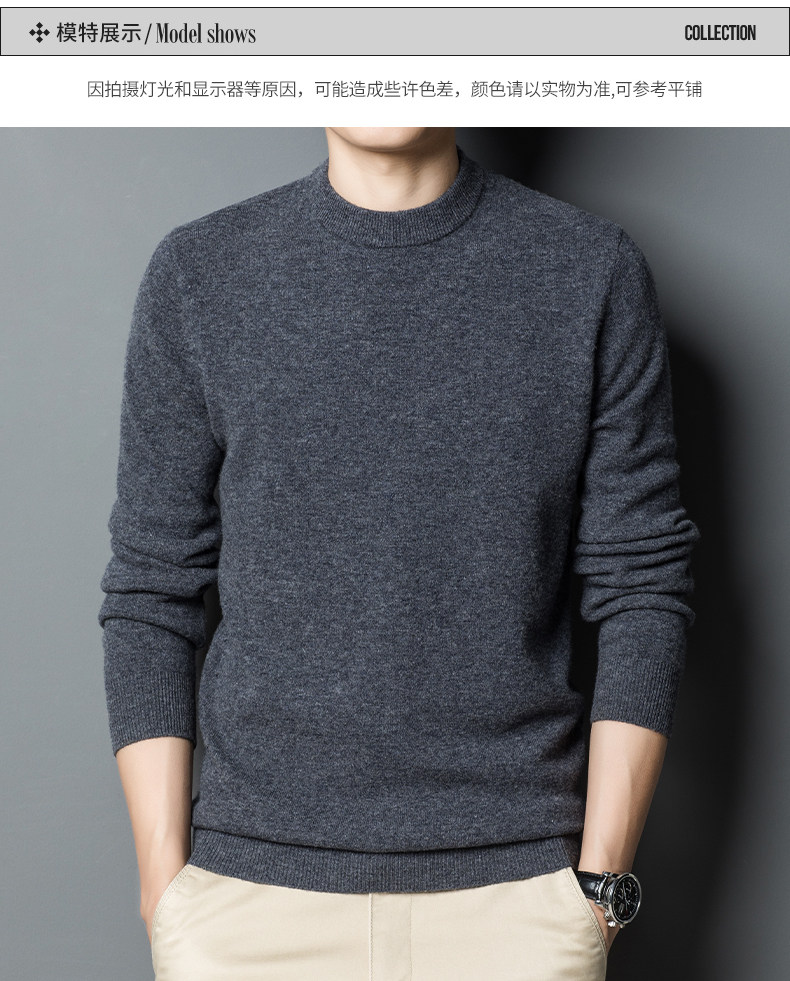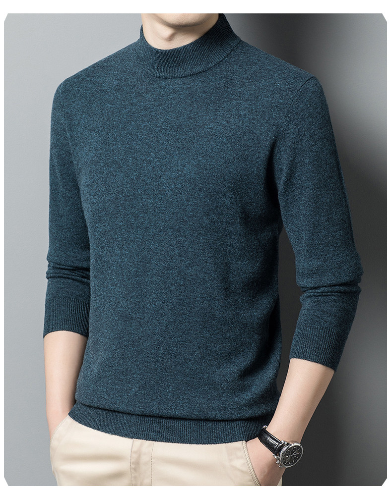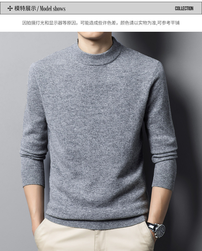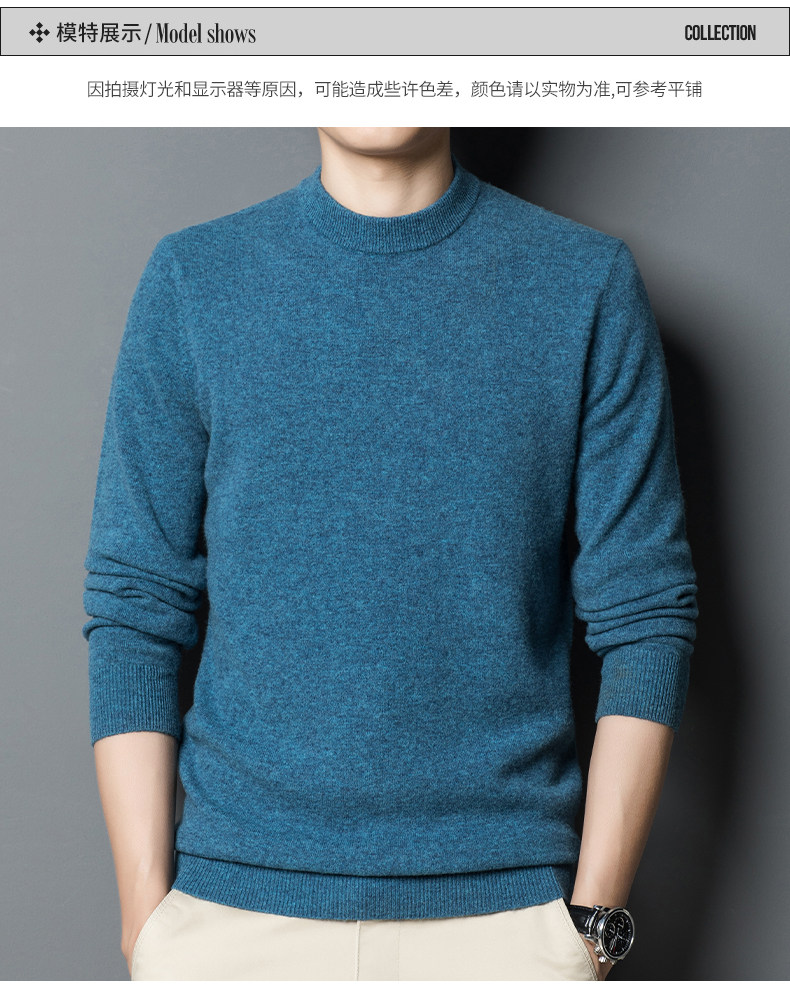 利郎男装正品冬季新款纯色羊绒衫男士休闲半高领羊毛衣打底衫加厚