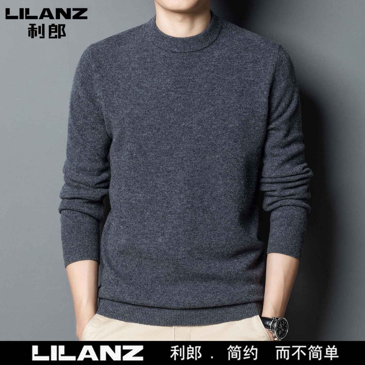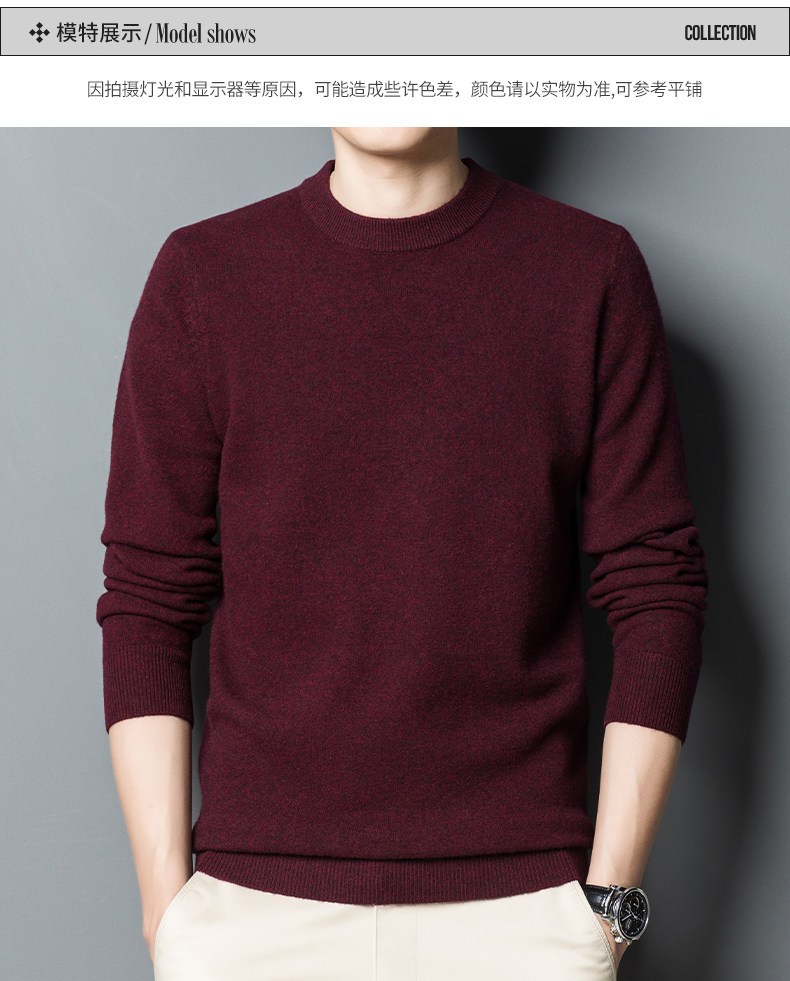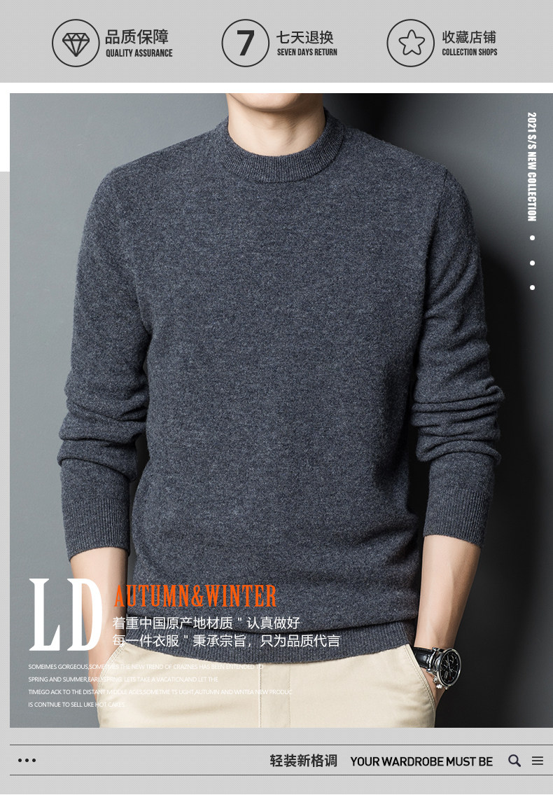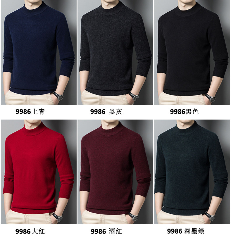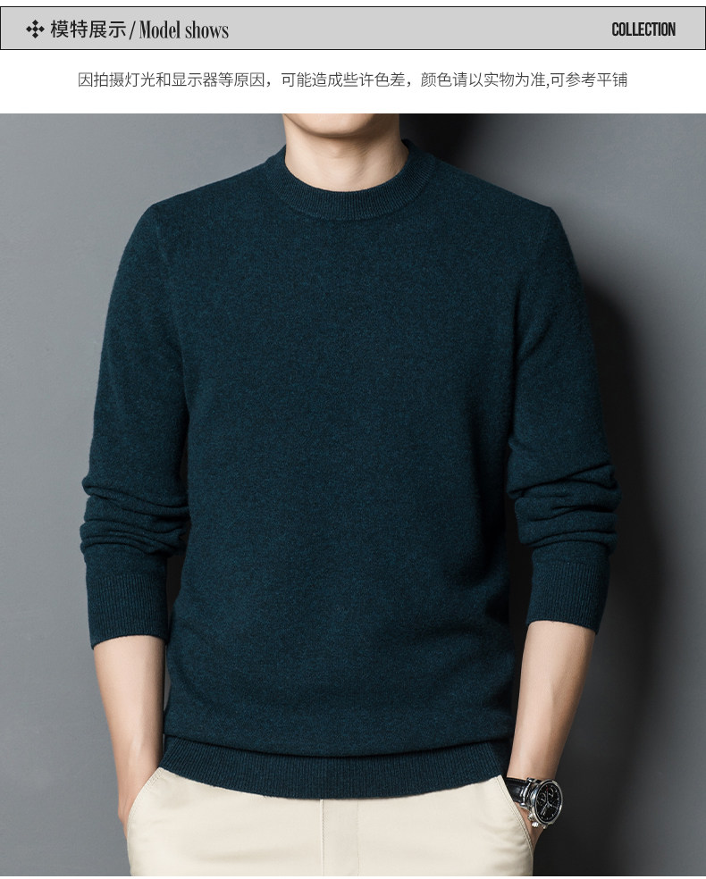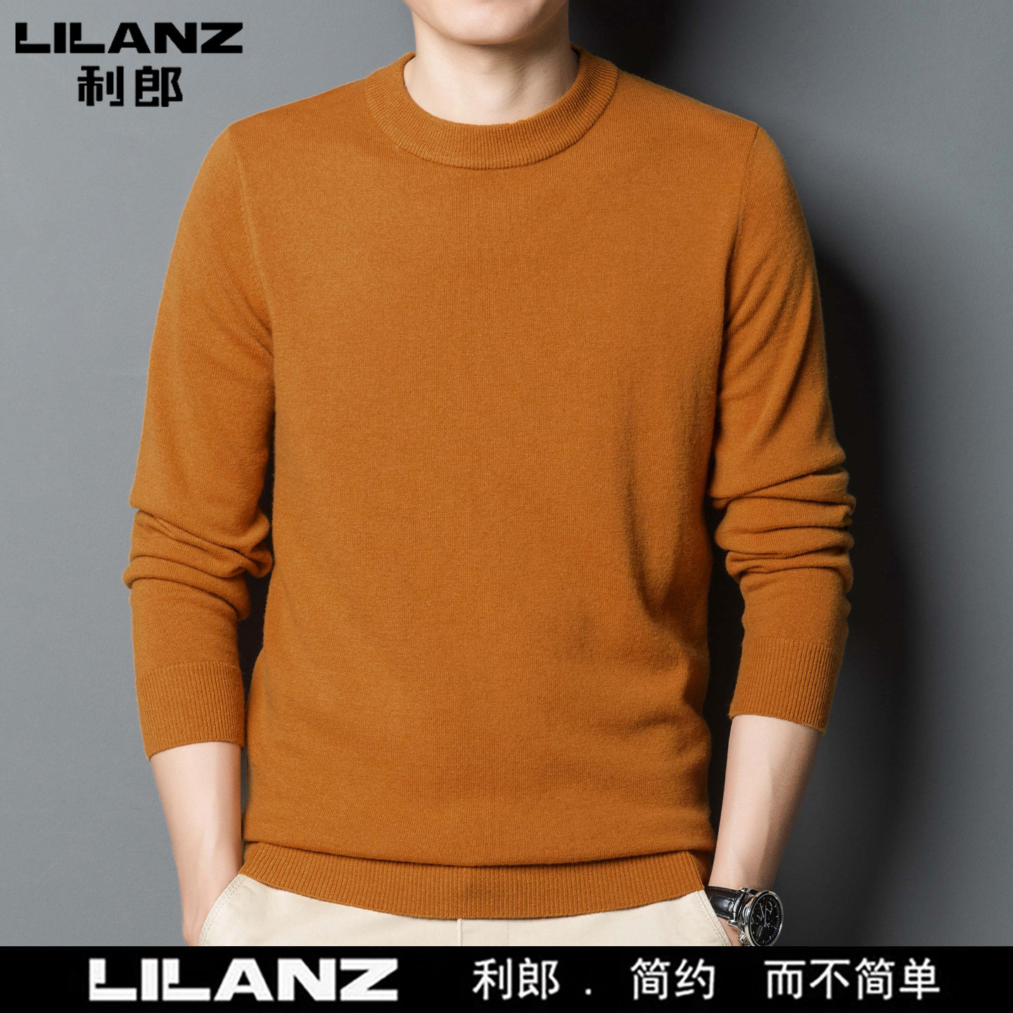 利郎男装正品冬季新款纯色羊绒衫男士休闲半高领羊毛衣打底衫加厚