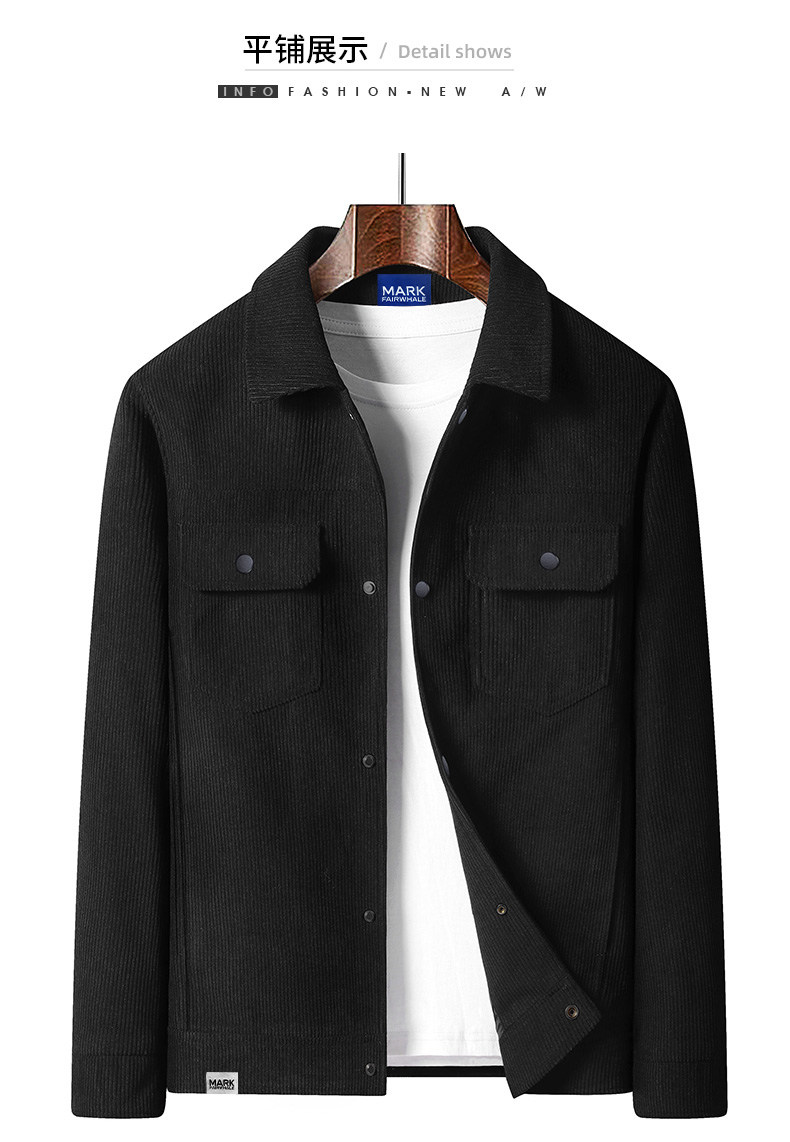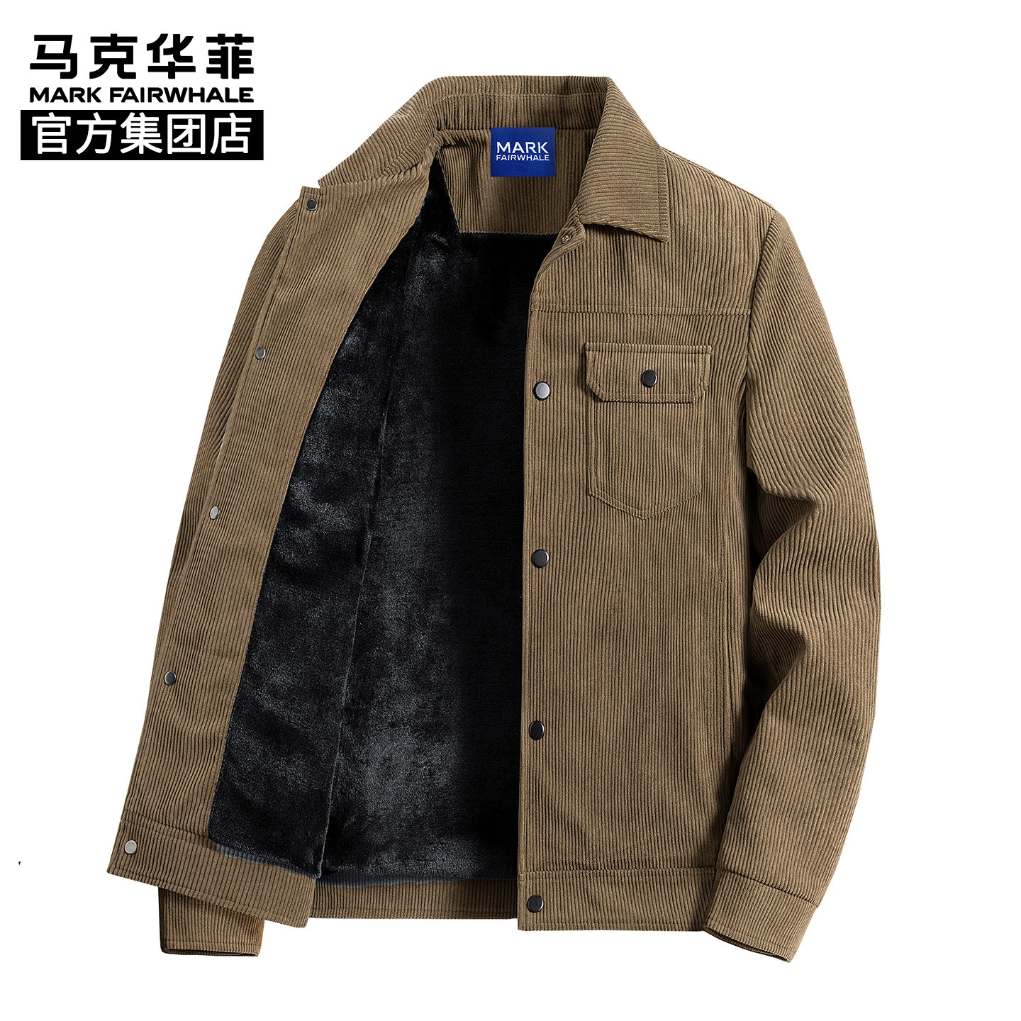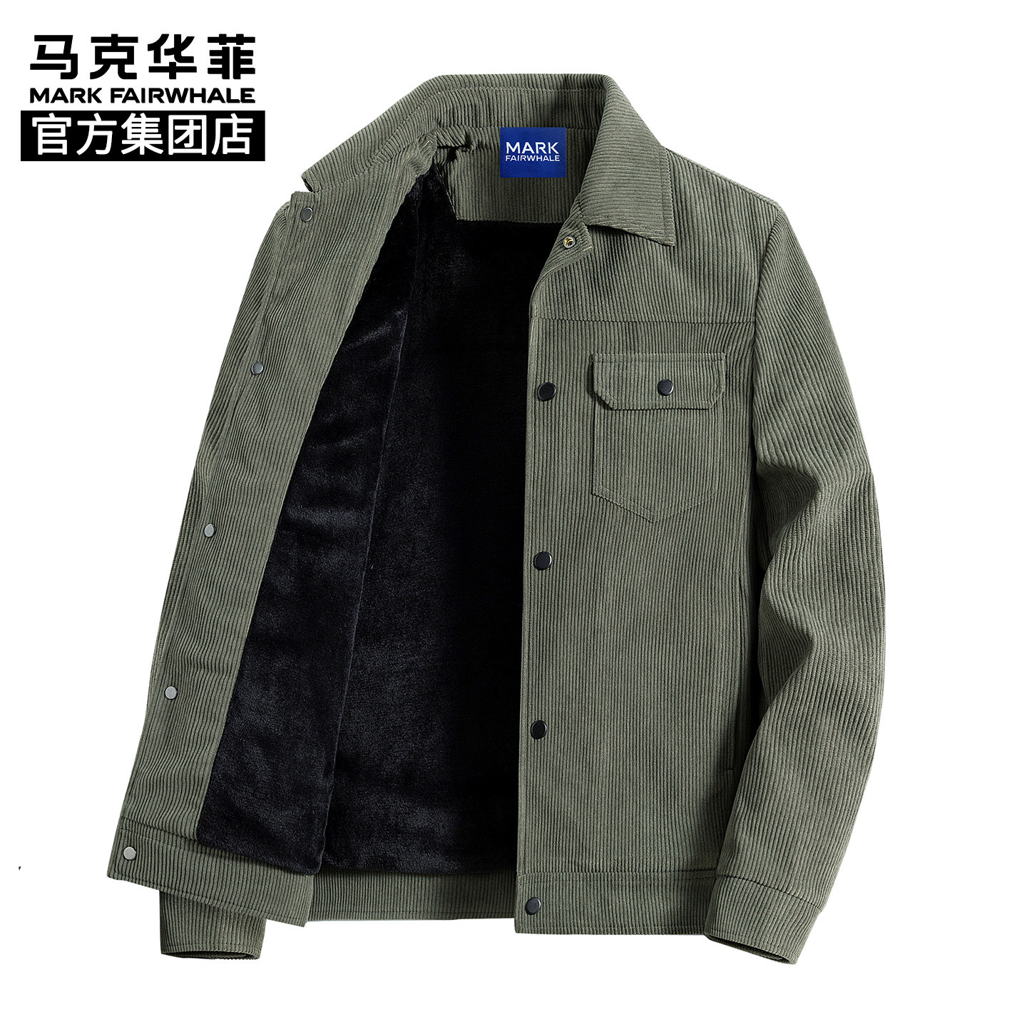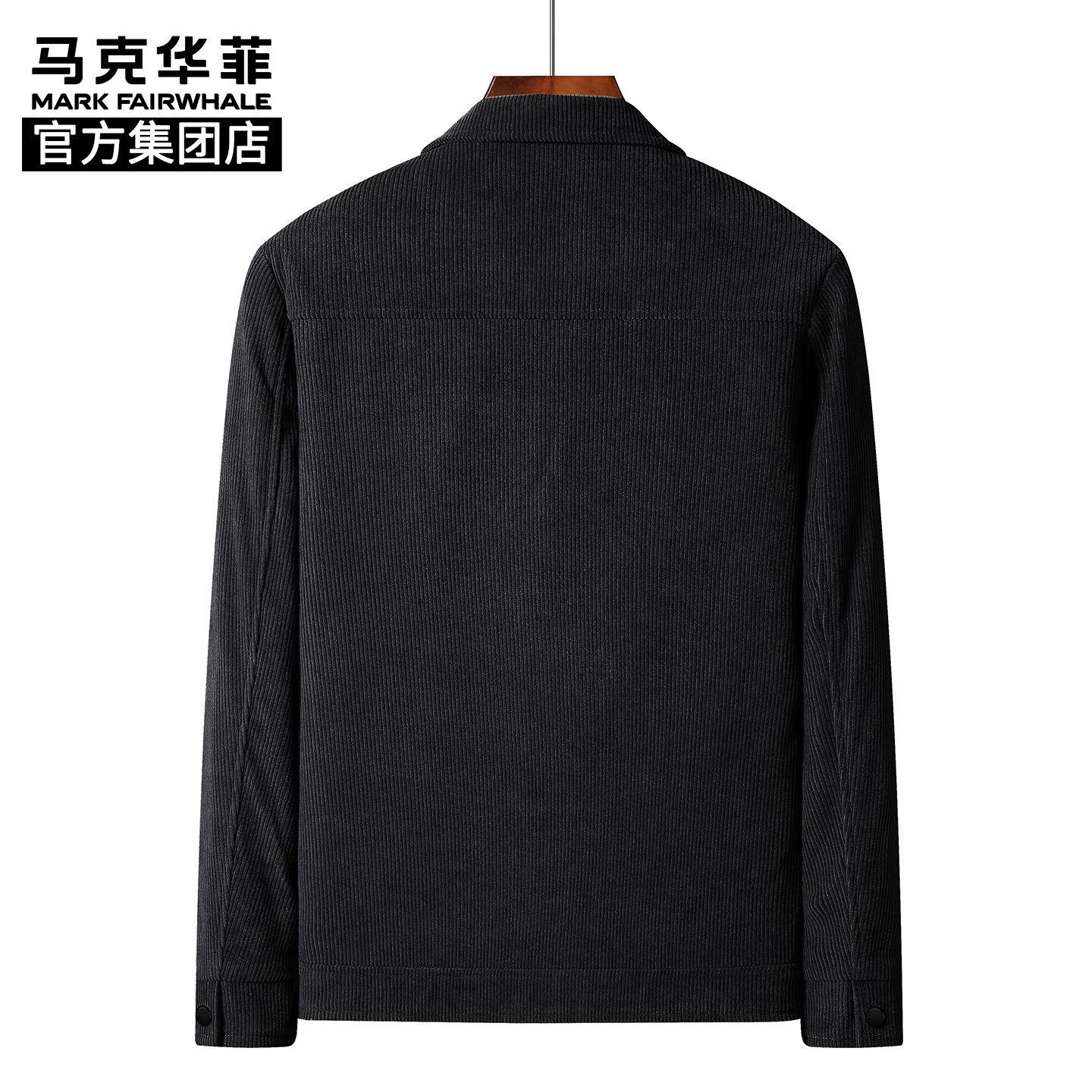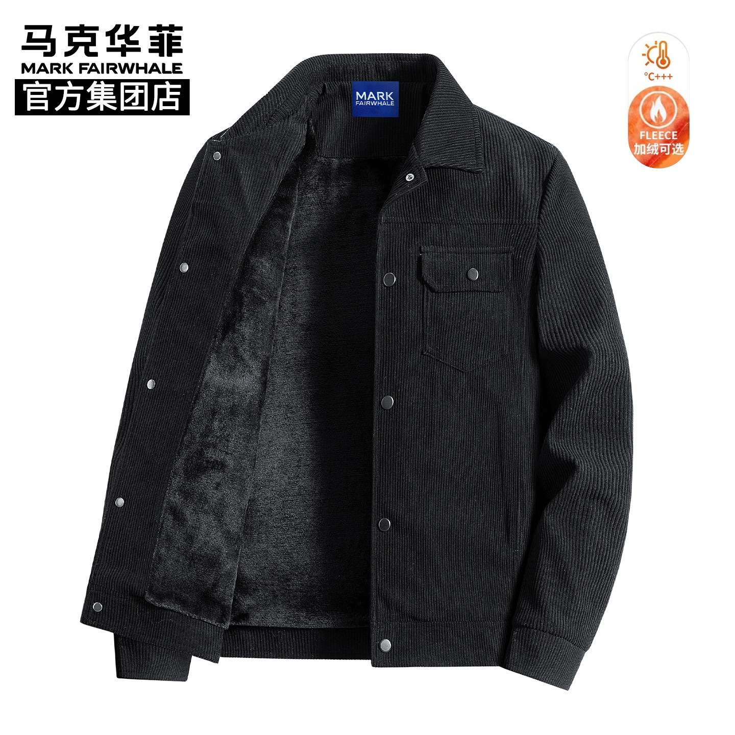 马克华菲 黑色工装翻领外套男秋冬季新款加绒加厚宽松灯芯绒夹克