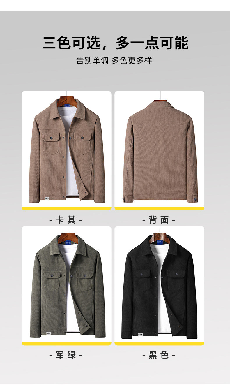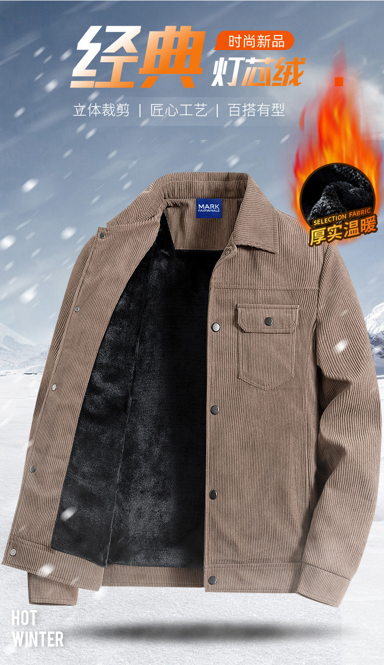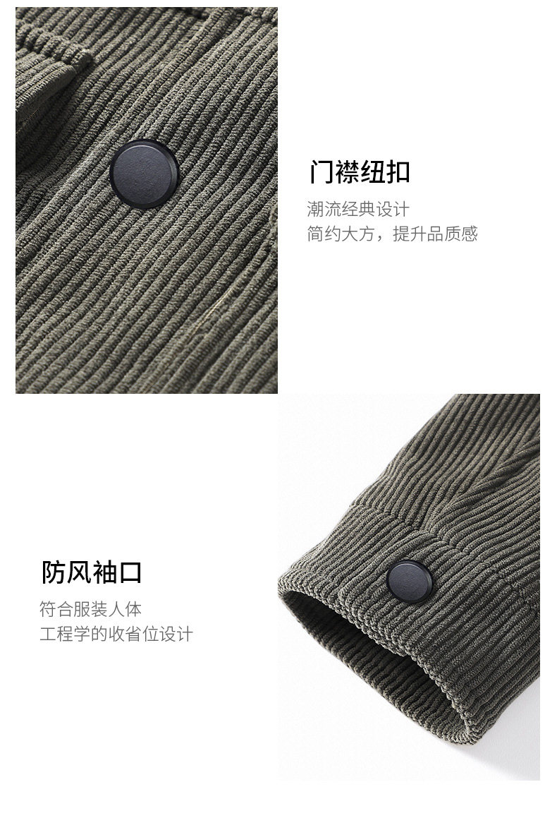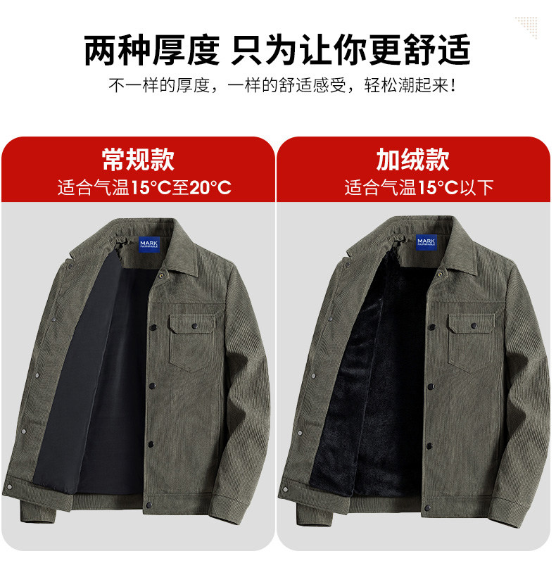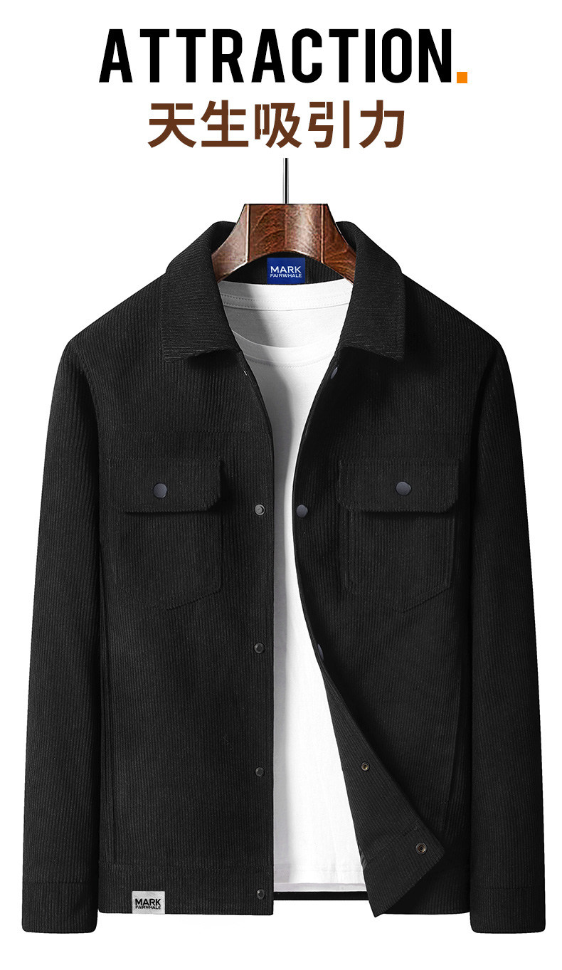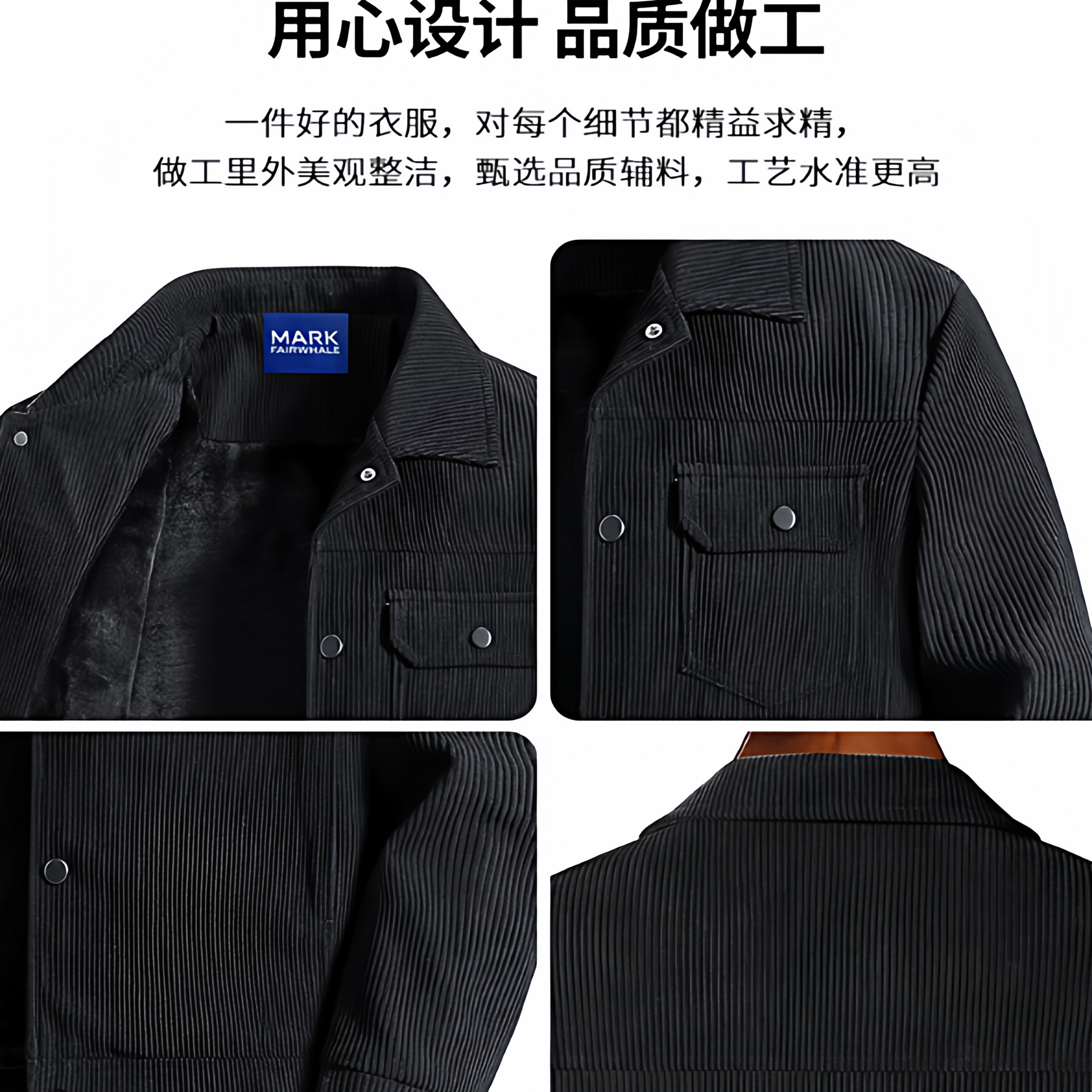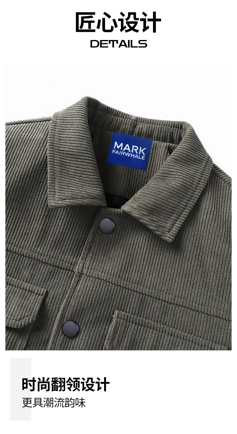 马克华菲 黑色工装翻领外套男秋冬季新款加绒加厚宽松灯芯绒夹克