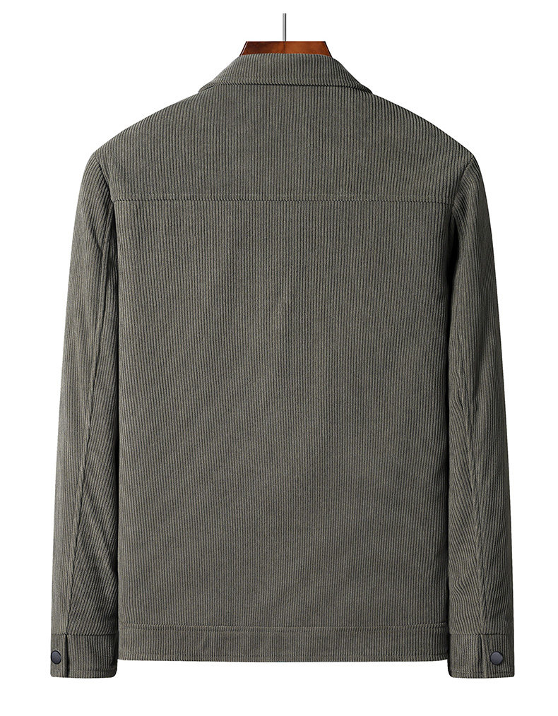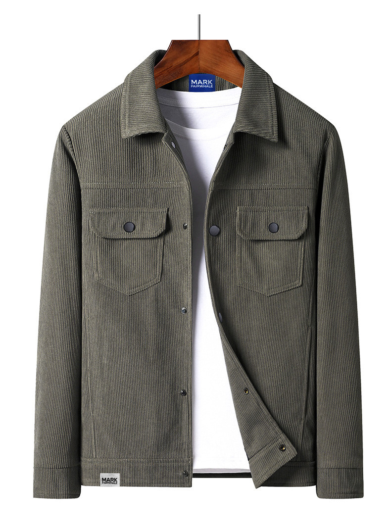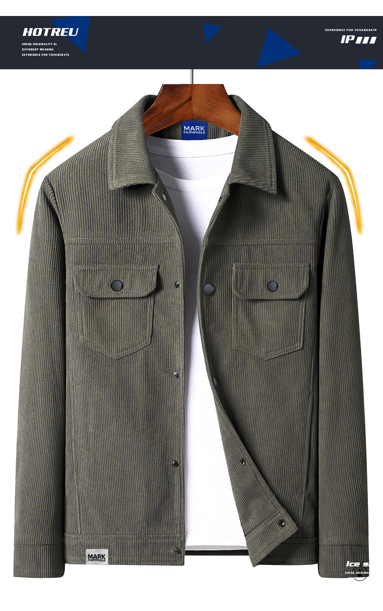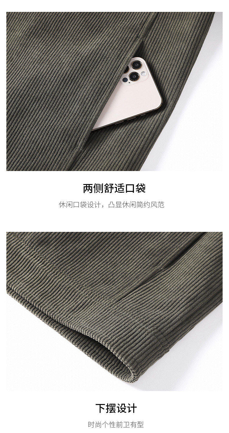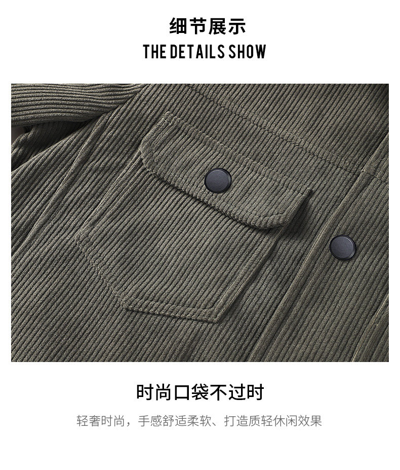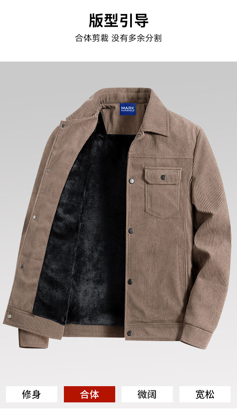 马克华菲 黑色工装翻领外套男秋冬季新款加绒加厚宽松灯芯绒夹克